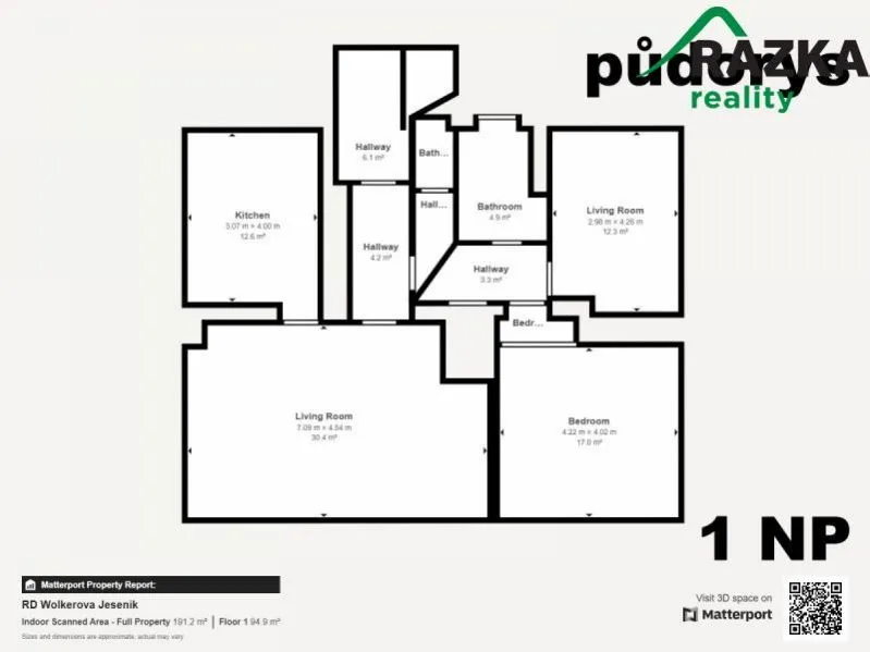 Dům o dispozici v 1 NP 3+1, obytná plocha 94,9 m2 a 2 NP 4+0 dispozičně o obytné ploše 96.4 m2. Celková obytná plocha je 191,3 m2. Dům nabízí dostatek prostoru pro pohodlné bydlení větší rodiny. Díky vstupu na prostornou verandu z obývacího pokoje se budete cítit blízko přírody a příjemná zahrada o velikosti 557 m2 bude vaším klidným útočištěm.