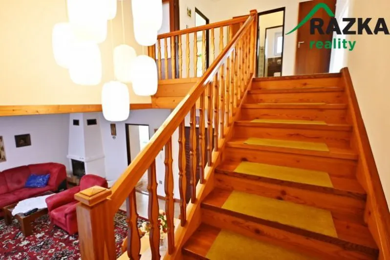 V prvním podlaží se nachází obývací pokoj s funkčním krbem, kuchyň, koupelna, samostatné WC a dva další pokoje. Ve druhém podlaží jsou čtyři velké místnosti, koupelna, samostatné WC a balkon s výhledem do okolí.