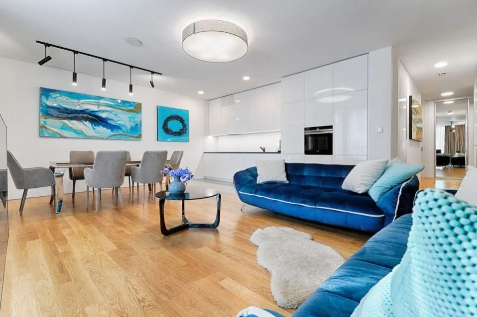 Nadstandartní a zcela kompletní vybavení zahrnuje luxusní kuchyňskou linku Hanák v bílém lesklém designu se všemi spotřebiči SIEMENS, myčka Miele, vestavěné šatní skříně na míru. Luxusní dřevěné dubové podlahy v obývacím pokoji s kuchyní, v ložnicích koberce, v koupelnách carrarský mramor a zařizovací předměty Villeroy and Boch. Osvětlení v celém bytě a exteriérové žaluzie na dálkové ovládání. Sušička, pračka.