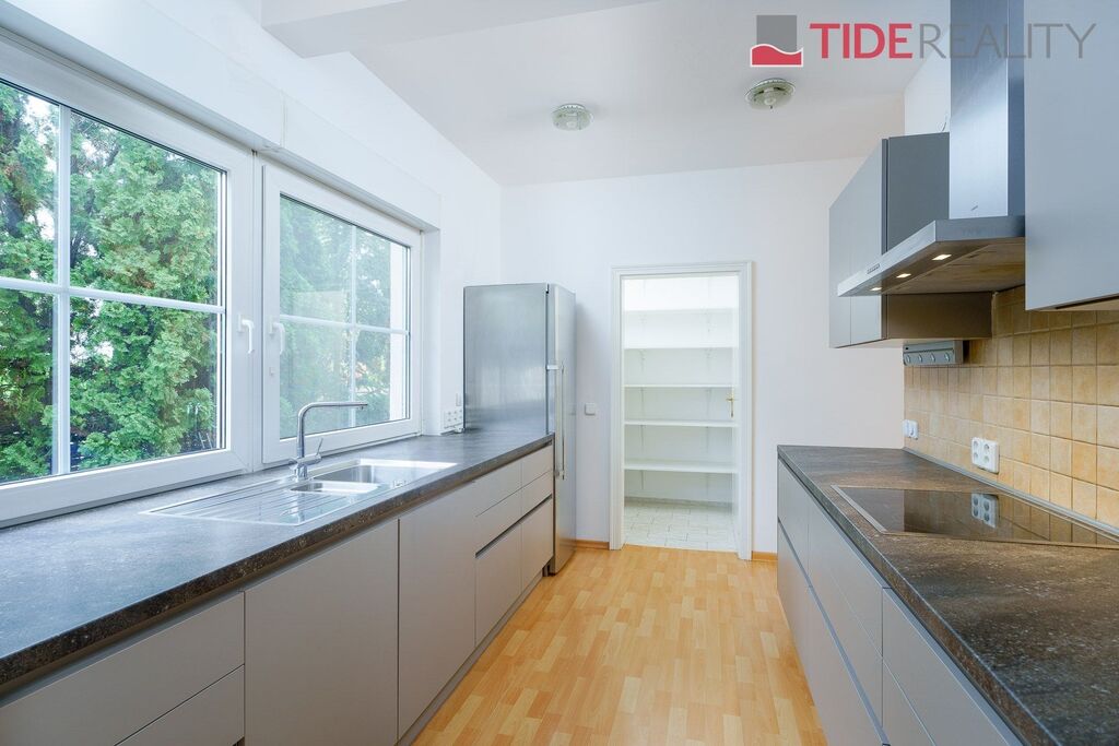 Nabízíme ke koupi velmi prostornou vilu, na nádherném a jedinečném místě Průhonic v sousedství Průhonického parku. Dům obklopený vzrostlou zelení zajišťující naprosté soukromí může být díky své velikosti i dispozici využívaný i k vícegeneračnímu bydlení. Dům se zastavěnou plochou 283m2, pečlivě udržovanou vzrostlou zahradou o velikosti 717m2, má užitnou plochu 416m2, která je rozložena ve třech podlažích. 1.PP je skladovací/úložný prostor o velikosti 60m2, v 1.NP (197m2) se nachází jednak dvougaráž s přímým napojením na dům a dále především velkoryse řešený obývací pokoj propojený s kvalitní a plně vybavenou kuchyní na celkové ploše 72m2 s východem na jihozápadní terasu a zahradu, dále 2 prostorné pokoje, 2 koupelny, samostatné WC, kotelna(plyn) pro toto podlaží.