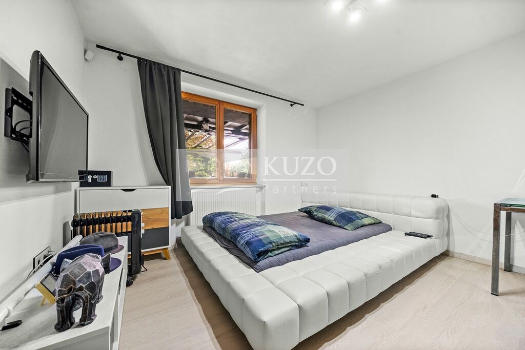 V přízemí se nachází pracovna se sociálním zařízením a bytová jednotka 1+1 rovněž se sociálním zařízením. Je zde také vstup do prádelny, kotelny, botárny a garáže. V 1. patře je nově zrekonstruovaná kuchyně s moderními spotřebiči (horkovzdušná trouba, mikrovlnná trouba, nadstandardně velká indučkní varná deska 52 x 78 cm, myčka nádobí, americká lednice), útulná jídelna, velká koupelna, prostorný obývací pokoj a pohodlná ložnice s balkónem a výhledem na zahradu, menší pokoj, sociální zařízení a spíž.