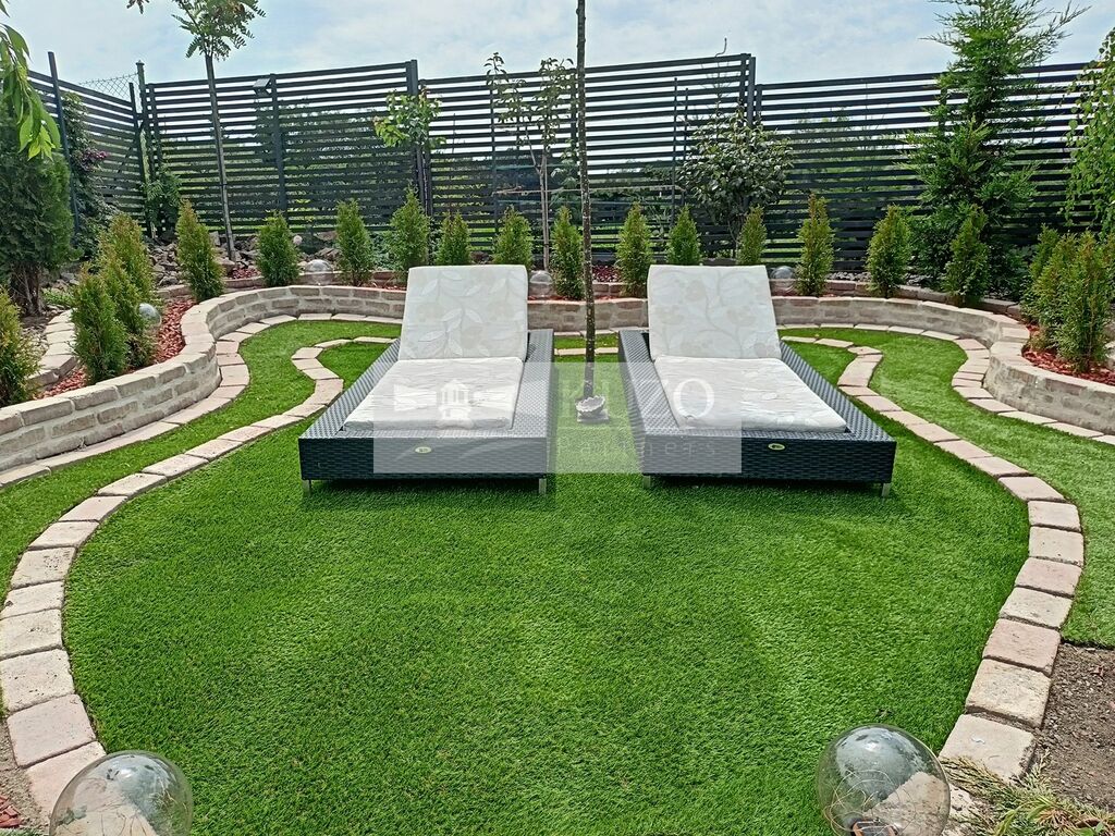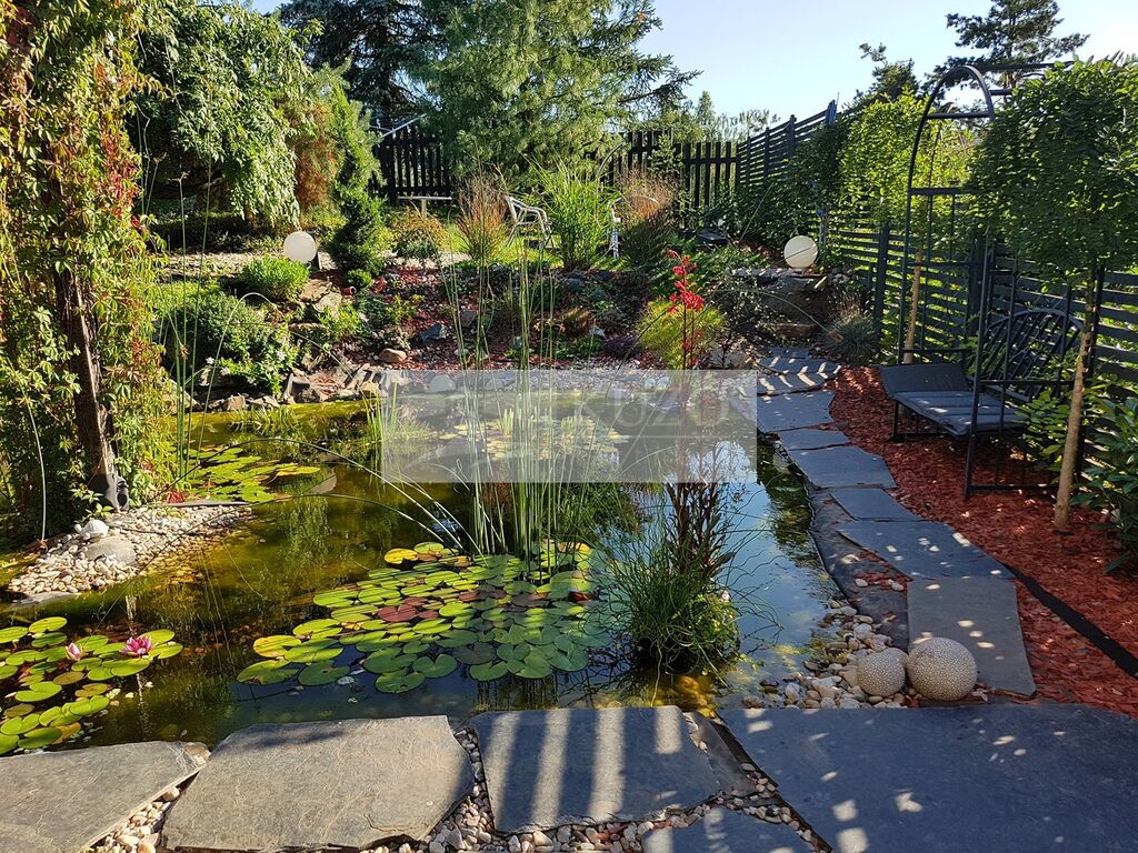 Zahrada tohoto domu je skutečnou oázou klidu. Najdete zde nejen pergolu z dubového dřeva, ale také dvě relaxační zóny. Dále je zde okrasné jezírko s rybkami, které dotváří atmosféru klidu, a vířivka pro relaxaci. Celý prostor zahrady (realizované v souladu s Feng Shui) je ideální pro rodinné oslavy, grilování s přáteli nebo jednoduše pro chvíle odpočinku. Celý pozemek je oplocen a osázen živým plotem ze stálezelených bobkovišní.