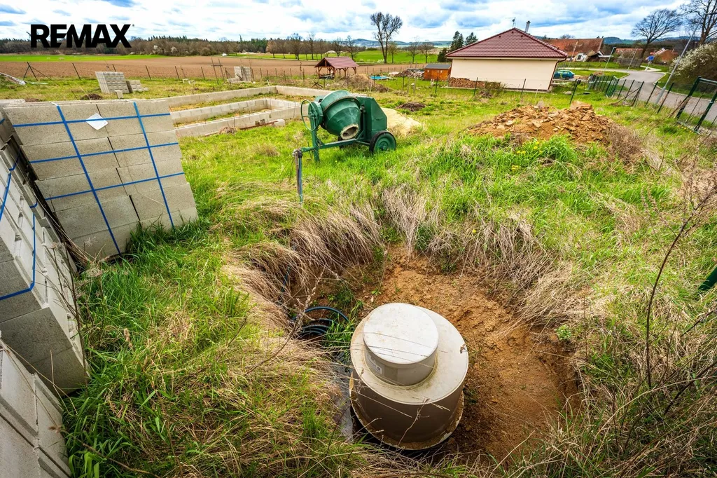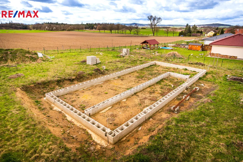 Nabízený pozemek prošel nákladnými úpravami, pro nového majitele je zde již zajištěno: kompletní oplocení pletivovým plotem s brankou a vraty pro vjezd techniky (realizace 100.000,- Kč), napojení na obecní vodovod s instalací vodoměrné šachty a přivedení elektřiny vč. instalace elektrického rozvaděče (realizace 25.000,- Kč). Dále byly na pozemku provedeny terénní úpravy v podobě sejmutí ornice a vykopání základů (realizace 140.000,- Kč). Základy jsou vylité do 100 – 120 cm hloubky, a to včetně položení hromosvodu. Ztracené bednění není zalité betonem.