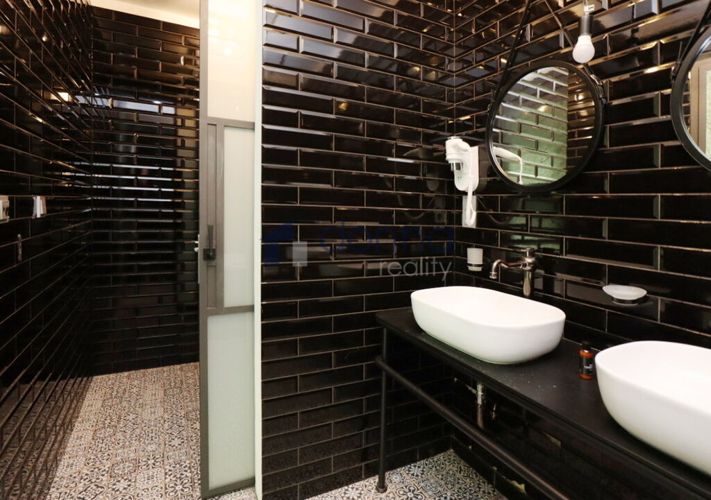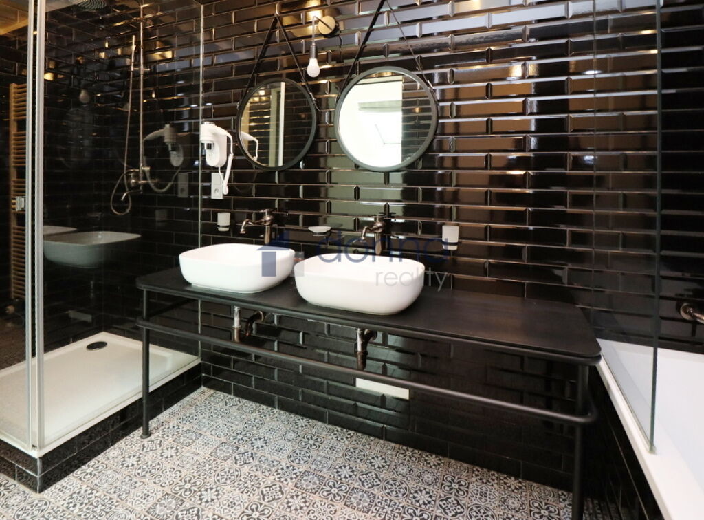 ze dvou samostatných ložnic. Byt má dvě koupelny – každá je vybavena vanou, v jedné je navíc sprchový kout, obě mají oddělené toalety s bidetem.