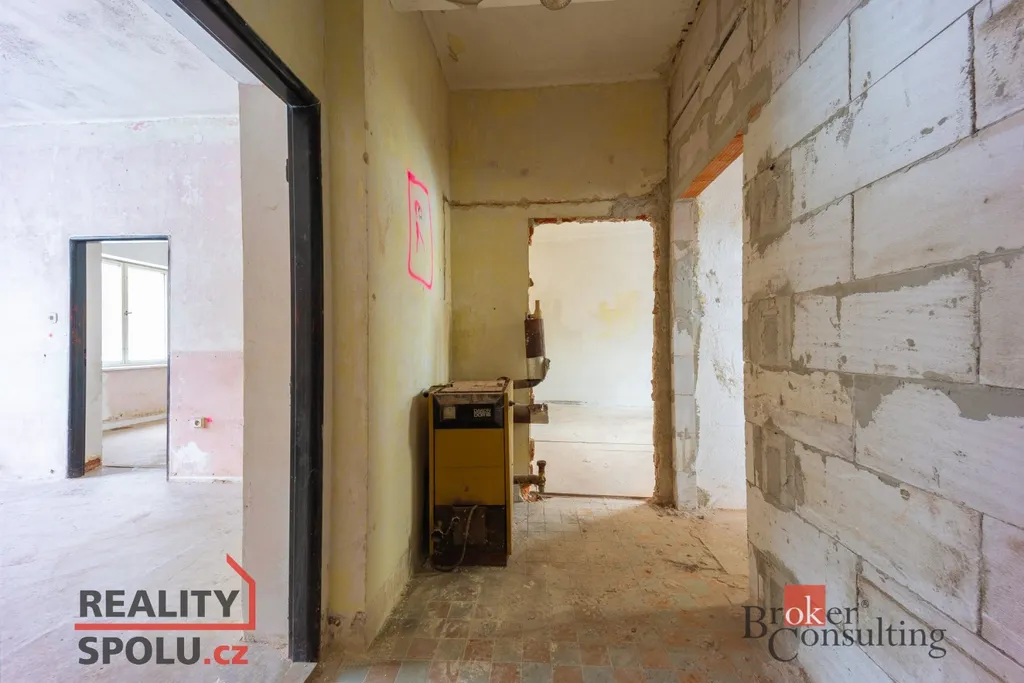 Byla již započata rekonstrukce bytu v prvním patře 2+1, kde je nový rozvod elektřiny. Původní majitel zpracoval dispoziční řešení bytových jednotek – viz. návrh.