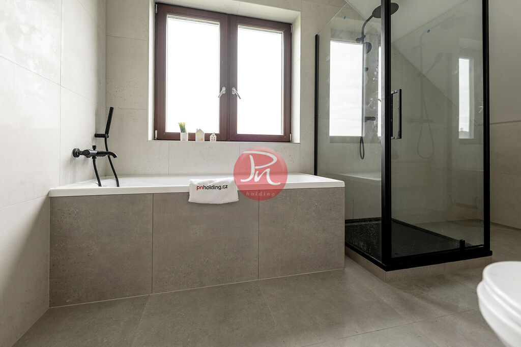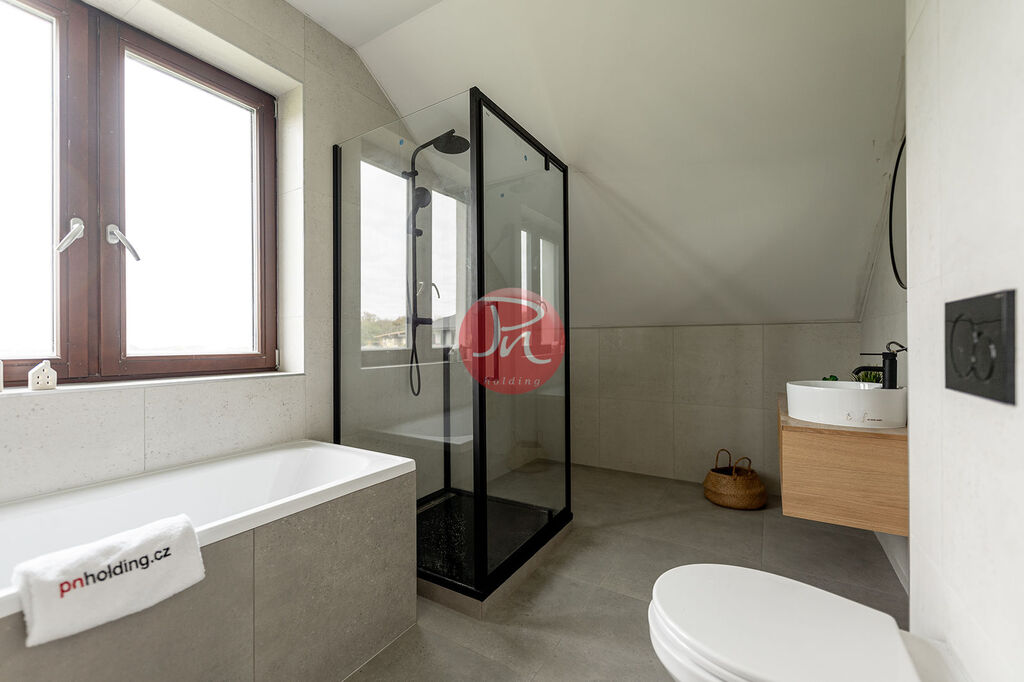 Ve druhém patře jsou 3 ložnice s nádherným výhledem do okolí. Prostornou koupelnu s vanou, sprchovým koutem a toaletou.