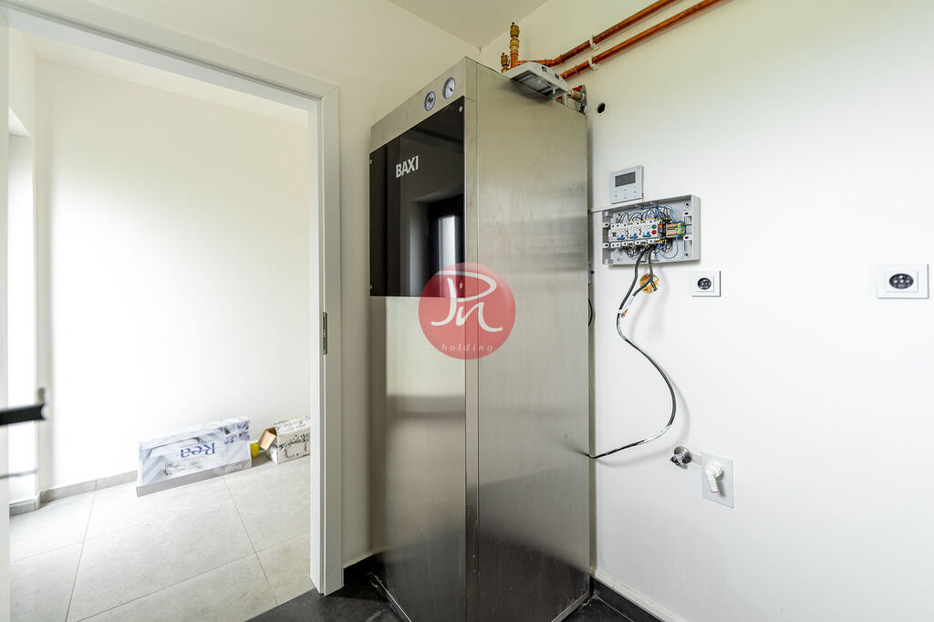 Ve spodním patře je prostorný obývací pokoj, kuchyňský kout, pokoj pro hosty, technická místnost, koupelna se sprchovým koutem a toaletou.