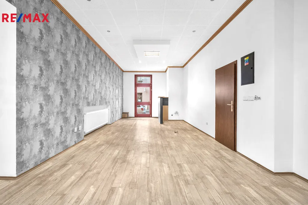 Druhý vchod vede do prostorného komerčního prostoru, který je vybaven třemi toaletami pro zákazníky a technickým zázemím pro personál, včetně vlastního kotle.