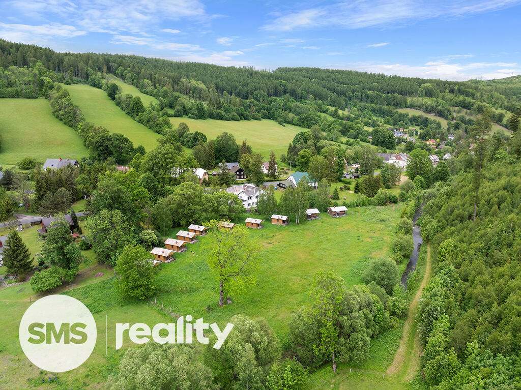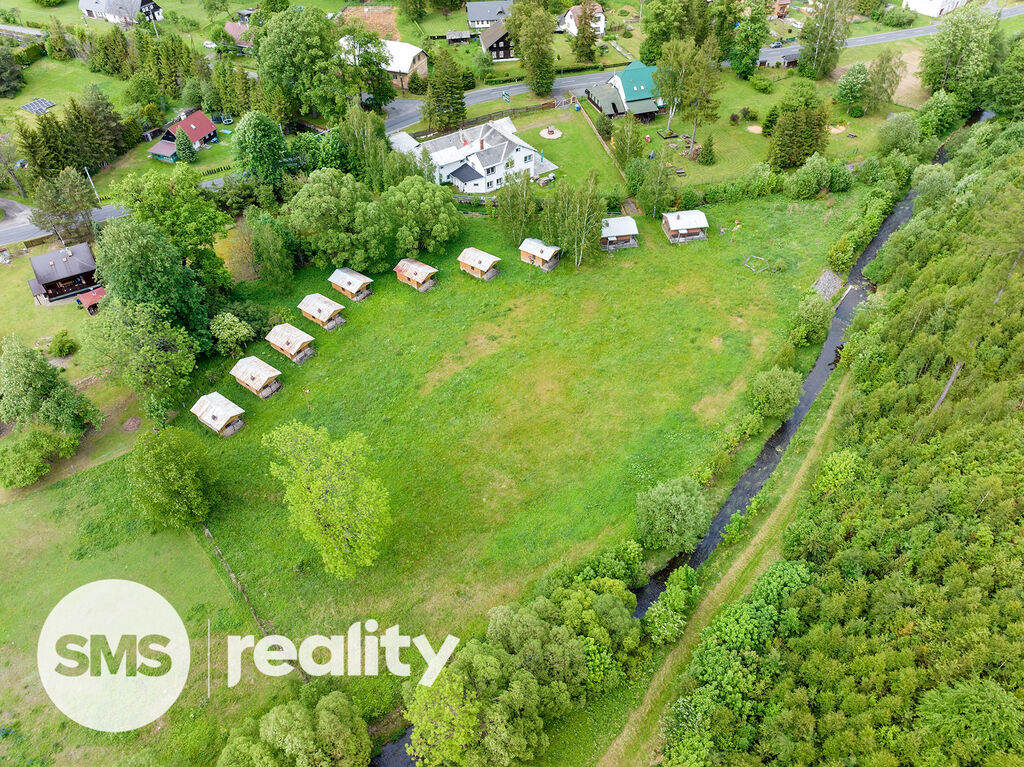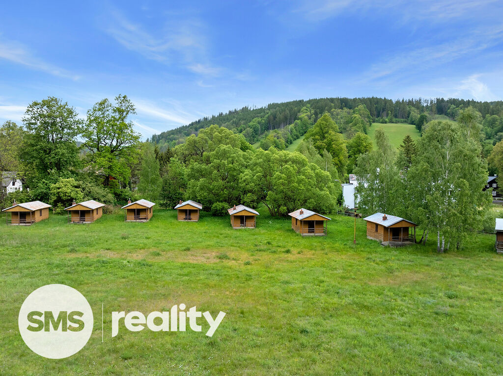 10 původních chatek – možnost renovace nebo výstavby nových ubytovacích jednotek (chatky jsou napojeny na elektřinu)