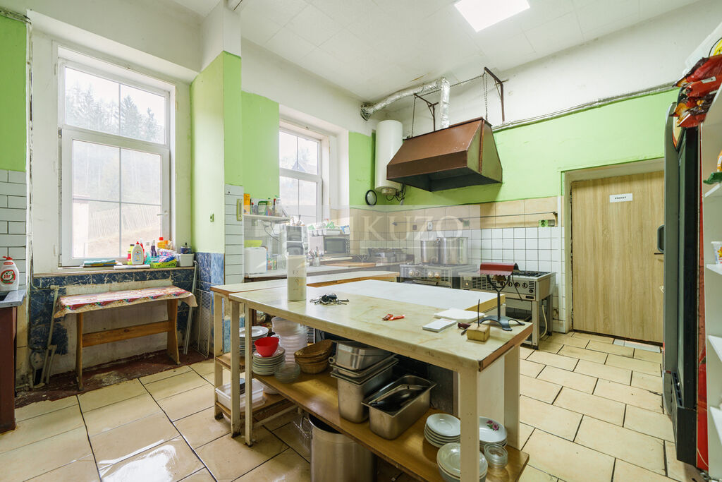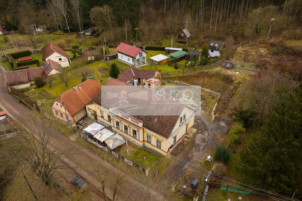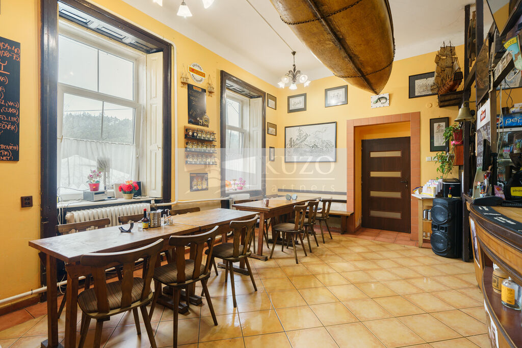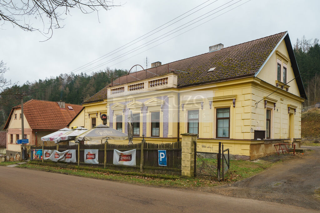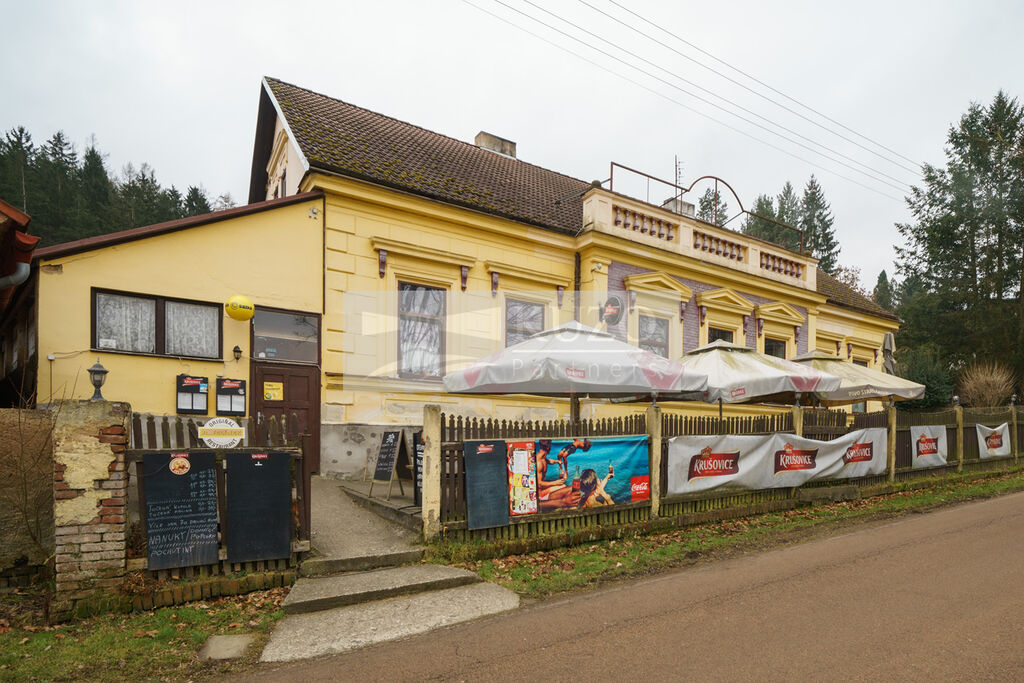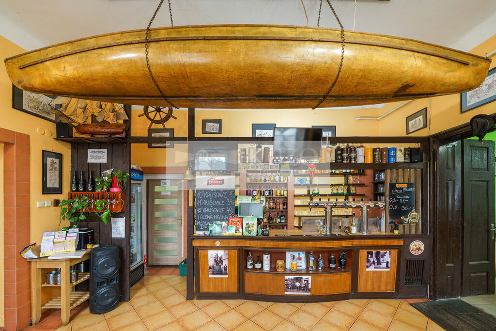 Nabízíme k prodeji víceúčelový objekt s restaurací, bytovými jednotkami a dalšími stavbami v atraktivní lokalitě u vodácké trasy. Dům stojí v klidné lokalitě se zástavbou rodinných domů na rozlehlých pozemcích o celkové výměře 2026 m². Hlavní budova zahrnuje funkční restauraci s vybavenou kuchyní a sociálním zázemím o celkové ploše 253 m², byt 2+1 (aktuálně pronajatý za 15 000 Kč/měsíc + energie), další rozestavěný byt (bude dokončen před prodejem). Nemovitost je možné přestavět na 5–6 bytových jednotek s dalším bytem v zadní části objektu se samostatným vchodem ze dvora. Na pozemku se nachází zděná stodola o velikosti 48 m², vejminek s užitnou plochou 44 m², zděná kůlna o rozloze 17,5 m². Součástí objektu je také rozpracovaná obytná půdní vestavba s výměrou 224 m², sklep o rozloze 45 m² a vybagrovaný prostor připravený pro terasu restaurace. Kromě stávajících budov zde existuje možnost výstavby dvou až tří vodáckých chatek, čímž se dále rozšiřují možnosti využití této nemovitosti. Objekt je postaven z cihel, má nová plastová okna z roku 2018, střechu s pálené krytinou Bramac (rekonstrukce 2016), nové rozvody vody včetně expanzní nádoby (2023), ohřev vody bojlerem, elektřinu částečně v mědi a částečně v hliníku a vlastní 15metrový vrt s dostatkem vody. Komín má 12 metrů a je pravidelně revidován, sociální zařízení bylo zrekonstruováno a nově obloženo. Hlavní klientelu tvoří vodáci, turisté, trampové a místní obyvatelé, v letní sezóně je vysoká návštěvnost. Investiční potenciál je široký - nemovitost lze nadále využívat pro již zaběhlé pohostinství nebo třeba k rozšíření ubytovací kapacity jako vodácké ubytování či přestavbu na bytové jednotky. V případě potřeby je možné nájem bytu ukončit před prodejem.
