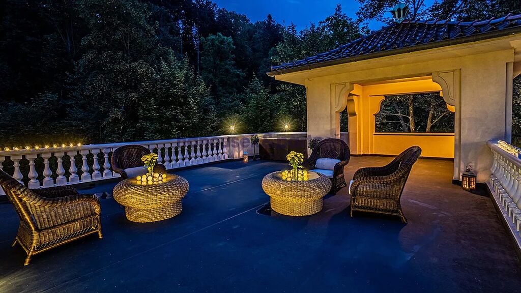 Nabízím vám jedinečnou vilu, která se nachází v podhůří Orlických hor, v obci Skuhrov nad Bělou. Tato třípatrová vila v maurském slohu byla postavena v letech 1931-1932 a její celková podlahová plocha je 658 m2. Nachází se na pozemku o velikosti více než 11 500 m2, na kterém se kromě vily rozkládá nádherná udržovaná zahrada s výměrou necelých 5 000 m2.