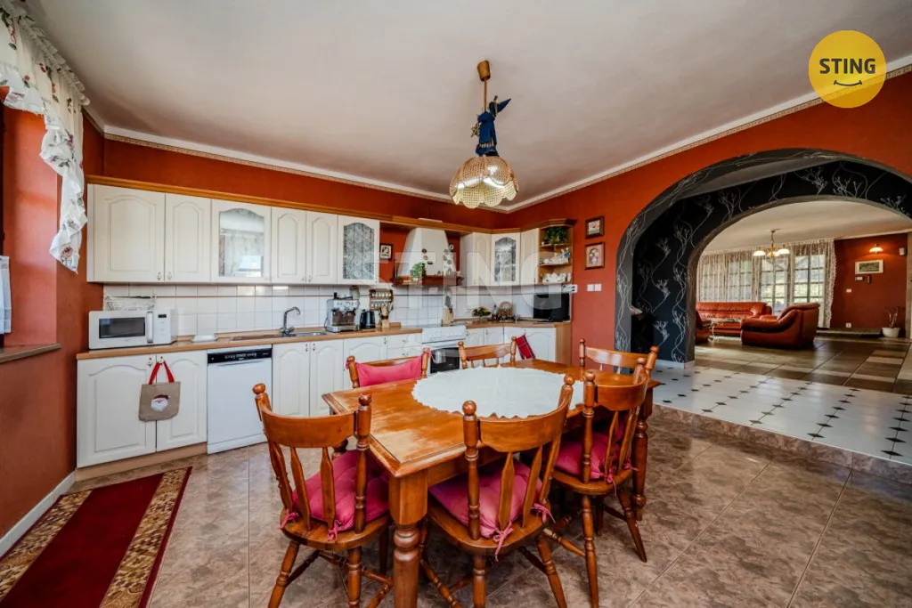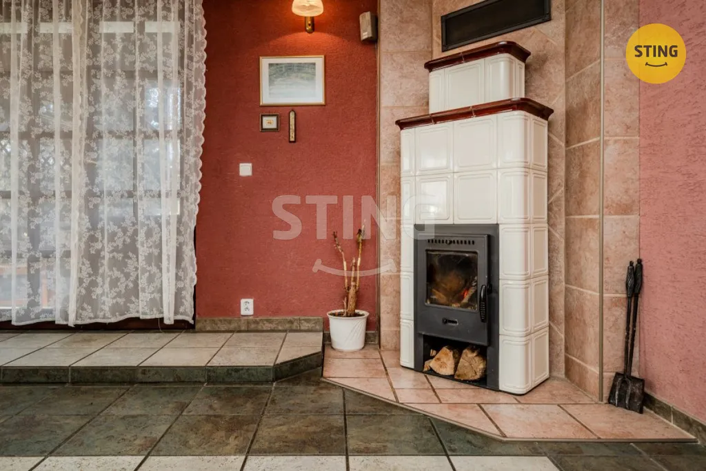 Tento dům nabízí komfortní bydlení s promyšleným dispozičním řešením. Prostorný obývací pokoj propojený s kuchyní, vytváří útulnou atmosféru, kterou umocňují kachlová kamna. Podlahové topení zajišťuje příjemnou tepelnou pohodu v domě, dlažba v celém přízemí. Masivní dveře včetně zárubní vyhotoveny na míru s klikami tzv. "Stará Vídeň" , toto označení znamená esenci rustikálního stylu plného zdobných prvků a tradiční elegance.