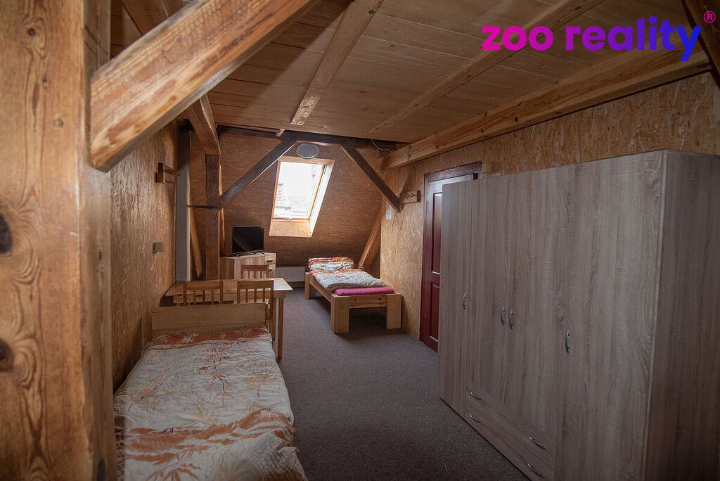 Nabízíme prodej rodinného domu přestavěného na ubytovací zařízení. Nemovitost se nachází v centru městyse Ševětín, nedaleko od Českých Budějovic. Jedná se o dvoupatrový dům s přístavbou. V přízemí se nachází samostatný byt 2+kk s koupelnou a WC, prostorná kuchyně, dva pokoje dohromady s 9-ti lůžky a přístavba, která slouží jako sociální zařízení pro celý objekt. Toto zařízení se skládá s 5x WC a 5 x samostatná sprcha. V zadní části objektu je technická místnost.