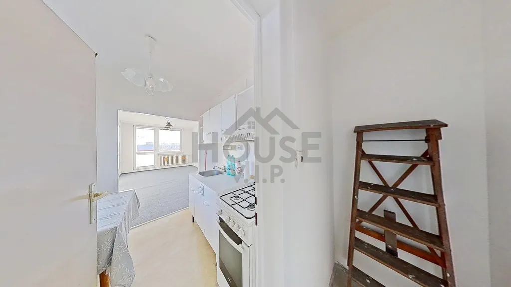 Byt je v osobním vlastnictví a nachází se v 8. patře panelového domu s výtahem a nabízí užitnou plochu 47 m².
