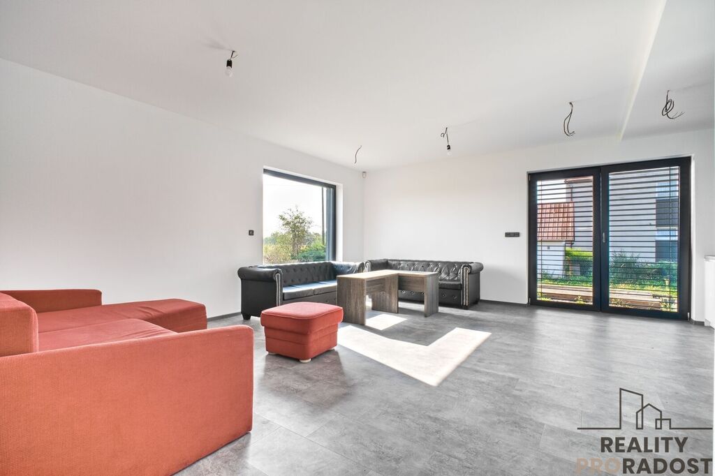 Jak je z fotek vidno, tak domy nejsou úplně ve finální verzi. Nicméně v ceně domu obsahuje, v domě přechodové lišty, kliky do dveří, terasa, kde si můžete ještě zvolit jaká dlažba by Vám nejvíce vyhovovala, nebo jestli chcete dodělat schody.
