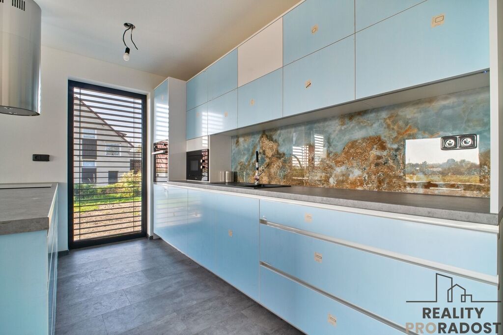 Plastová okna s izolačním trojsklem a samozřejmostí venkovní rolety které si můžete řídit přes Wi-Fi. Abyste měli úplné pohodlí a nikde nemuseli stávat tak i podlahové topení si nastavíte přes telefon.