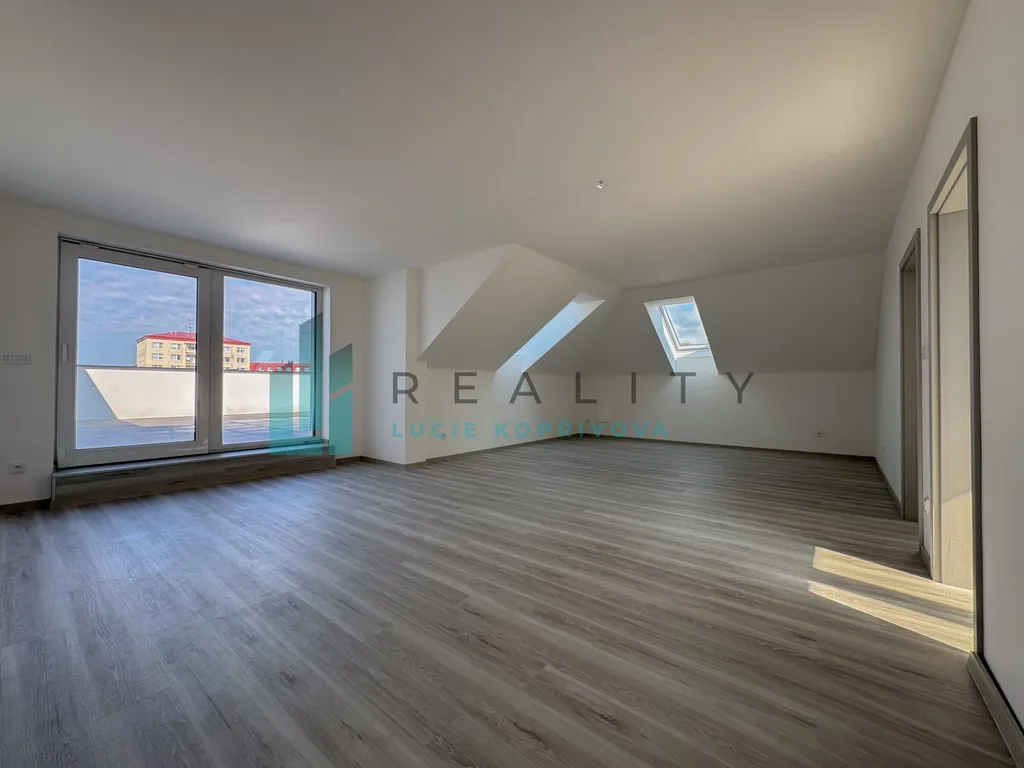 Hledáte bydlení, které vám vyrazí dech? Tento nadstandardní podkrovní byt v nově zkolaudované Rezidenci Grůska ve Strážnici nabízí něco, co jinde nenajdete: obrovskou terasu o rozloze 57,65 m². To je prostor odpovídající menšímu bytu 2+kk, který máte jen pro sebe pod širým nebem.