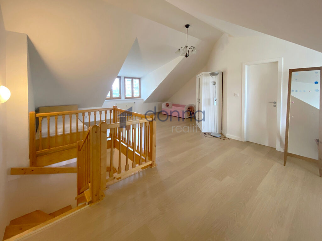 Horní patro - horní část bytu nabízí zajímavý a velký otevřený prostor (46,5m2) s vlastní koupelnou, sprchovým koutem a toaletou. Toto horní patro je oddělené a uzavřené dveřmi.