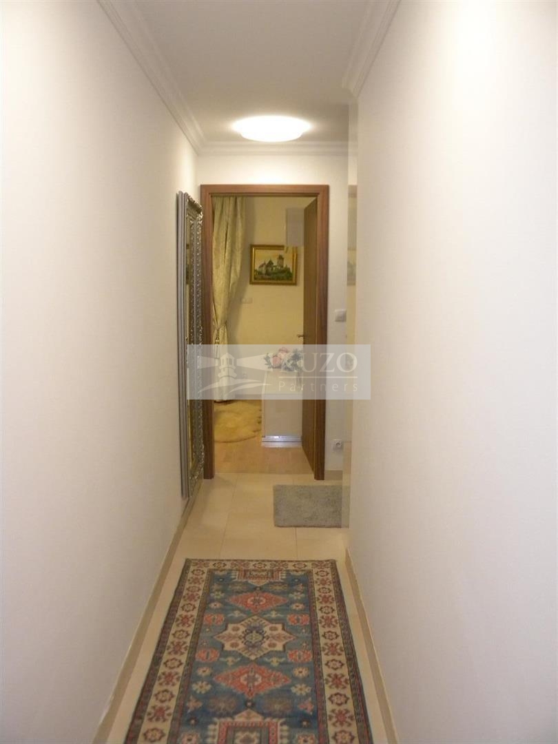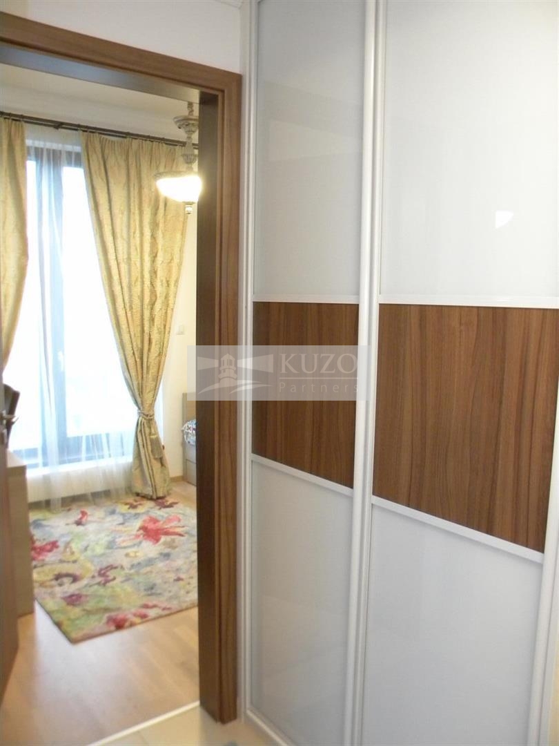 Světlý interiér bytu nabízí prostorný obývací pokoj s kuchyňským koutem 35,8 m2 a klidová část (3 ložnice 13,1 m2 a 13,3 m2 a 12 m2). Ze dvou pokojů je vstup na terasu, obývací pokoj má pak svoji terasu a je z něj přístup i na terasu nacházející se na střeše domu.