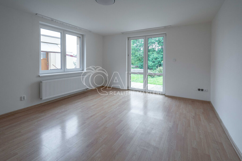 Druhá jednotka o dispozici 2+kk a velikosti 50,53 m2: vstupní chodba, obývací pokoj s kuchyňským koutem a vstupem do zahrady, ložnice, šatna, koupelna se sprchovým koutem a WC.