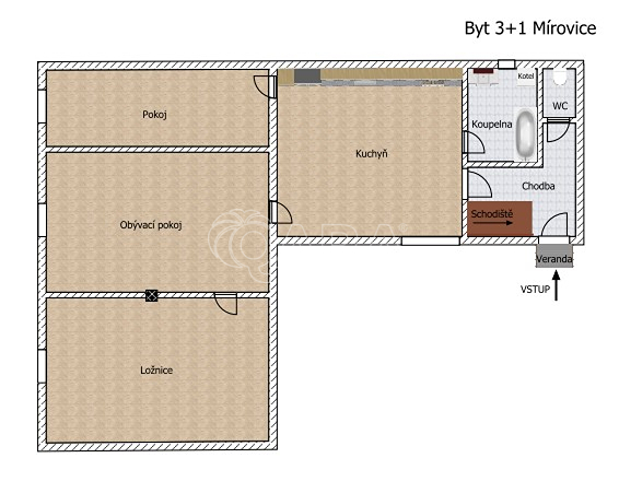 Dispozice částečně podsklepeného domu. Samostatná jednotka 3+1 o velikosti 81,22 m2, s vlastním vchodem: vstupní chodba, kuchyně, obývací pokoj, ložnice, menší pokoj aktuálně sloužící jako pracovna, koupelna se sprchovým koutem a samostatné WC.