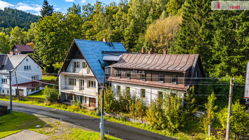 Dumrealit.cz Vám zprostředkuje příležitost koupě cihlového domu vhodného na provozování pensionu, hotelu, ubytovny či dlouhodobých a krátkodobých pronájmů. Dům - horská chata se nachází v klidné oblasti Krušných hor v obci Stříbrná nedaleko Kraslic. Objekt obklopuje pozemek o rozloze 2671 m², zastavěná plocha tvoří 506 m², užitná plocha objektu je cca 950 m². Celkem je zde 14 pokojů, některé s vlastní koupelnou, některé se sdíleným sociálním zařízením. Dále je zde restaurace s jídelnou, několik skladů, technických místností, kotelna, sklep, garáž, koupelny, soc. zařízení a navíc je zde bývalý byt pro správce. Do objektu je zavedena elektřina, vodovodní řad. Přes pozemek teče potok, který je dalším zdrojem vody. Odpad je nyní do septiku, ale není problém napojit na kanalizaci, která je v ulici (cca 2 m). Plynové vedení je v blízkosti. Vytápění je možné na elektřinu (tepelné čerpadlo) či na kotel na pevná paliva. Střecha je plechová, krov je v dobrém stavu. Parkování je možné na pozemku přímo naproti objektu. Dojezdová vzdálenost k hraničnímu přechodu s Německem je do 5 minut. Lokalita má výborné podmínky pro letní i zimní sporty a rekreaci, k dispozici je lyžařský areál Stříbrná, do 7 minut autem je vzdálen lyžařský areál Krajka a Saporo v Kraslicích. K dispozici spousty běžeckých tras až do Německa - Krušnohorská magistrála. Blízká Bublava je také úžasná pro letní turistiku se spousty turistickými a naučnými stezkami. Veškerá občanská vybavenost je jak v Kraslicích tak v Lubech. Do dvaceti minut jízdy jsou vzdáleny Karlovy Vary, které se staly součástí kulturního dědictví UNESCO. Zde je veškerá občanská vybavenost, supermarkety, úřady, banky a další. V okolí Stříbrné je bezpočet turistických a cyklotras které pokračují po perfektních cyklostezkách dále do Německa. Cena zahrnuje provizi a právní servis. V případě zájmu Vám doporučíme naše prověřené hypoteční poradce. Ev. číslo: 650477.