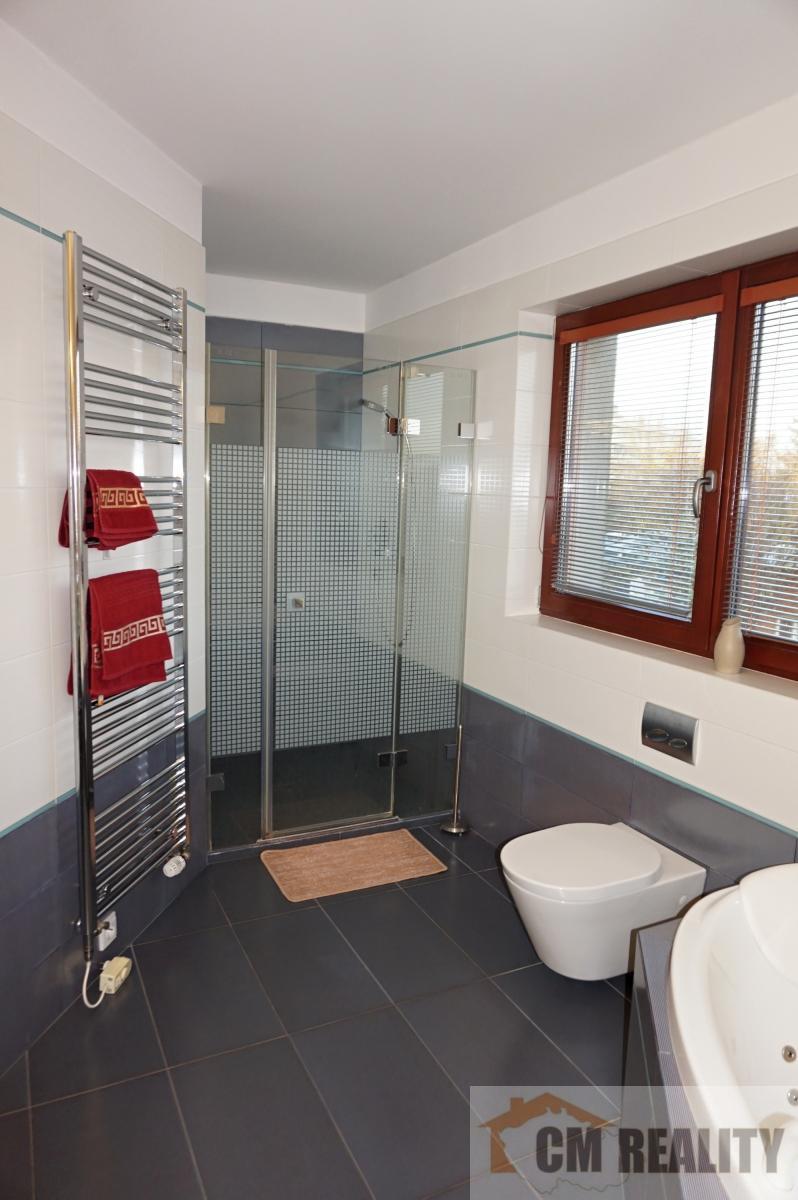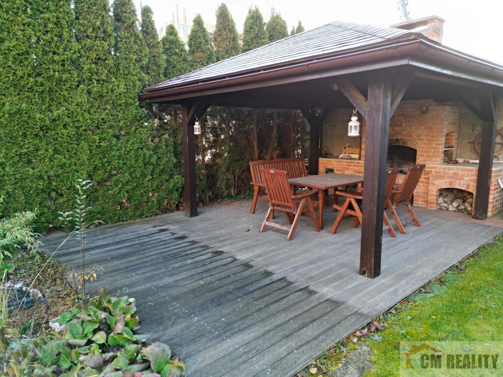 Dům má EZS se třemi okruhy: dům, kanceláře, garáž. Zálivku zahrady zajišťuje závlaha fy. Rain Bird, voda je čerpána z retenční nádrže. Okolo domu je vzrostlá zeleň, keře a stromy, které zajišťují příjemné prostředí a soukromí pro majitele domu. V zadní části zahrady je zastřešené posezení s grilem. Dům je napojen na veškeré IS. Dům byl kolaudován 7/2008. Parkování pro 3 vozy je na vlastním pozemku + garáž pro 1 automobil. Vjezd na parkovací plochu je el. ovládanou bránou.