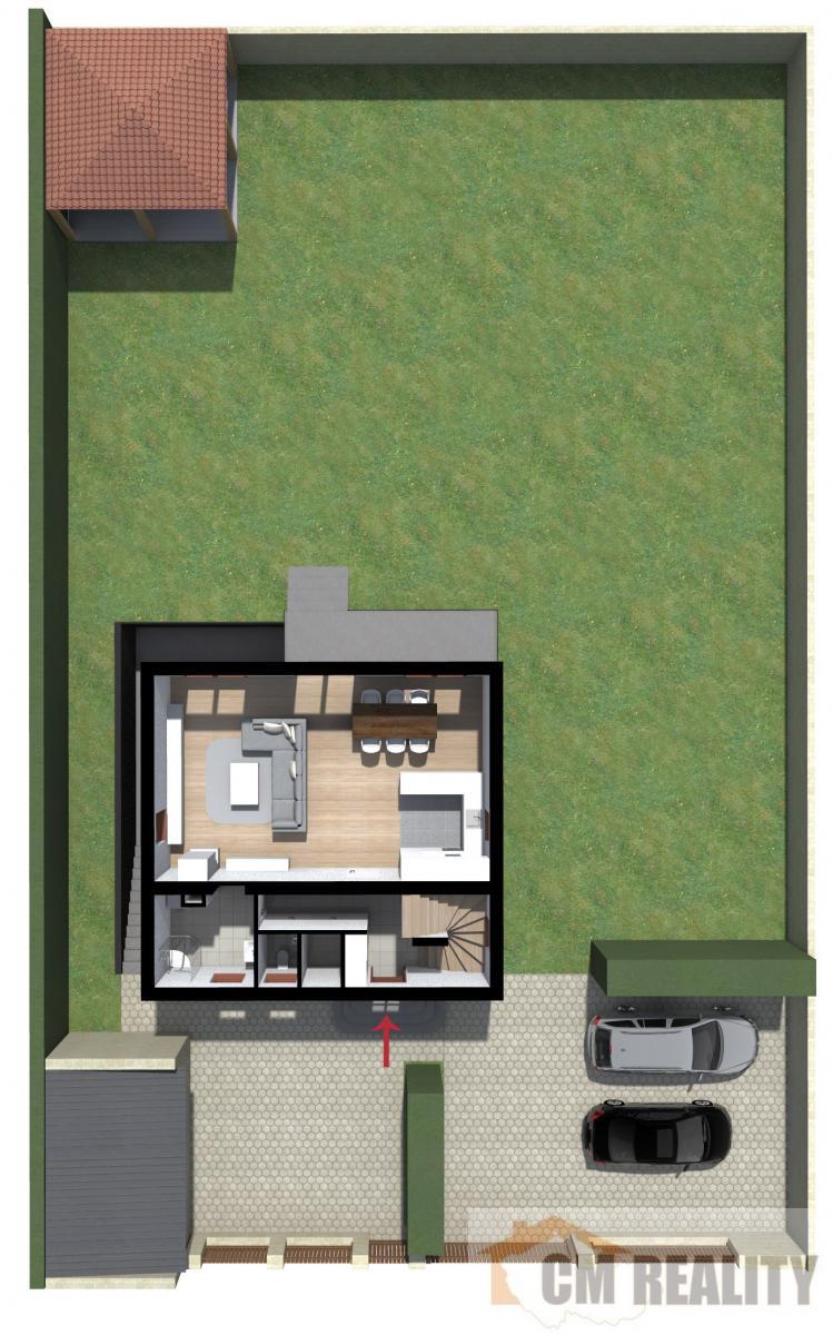 Suterén domu sloužil majiteli jako kanceláře s vlastním soc. zařízením a kuchyňkou. Vstup do kanceláří je samostatný z boční strany domu. Suterén lze případně využít i jako samostatný byt.