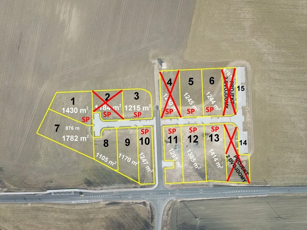 pozemek č. 15 - 876 m2 - 6.000.000,- Kč (pro 2 dvojdomy) ZAMLUVENO