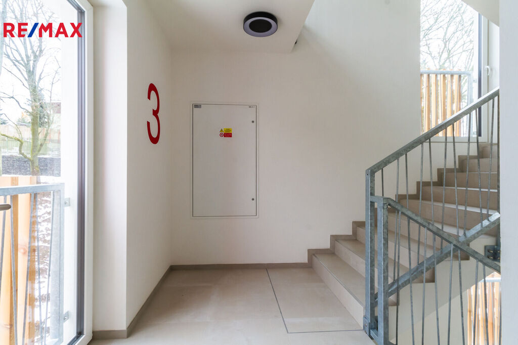 K bytu lze dokoupit prostornou sklepní kóji pro uskladnění kol a lyží.