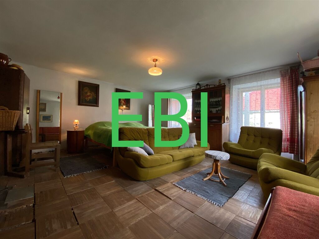 Nabízíme k prodeji klasické vesnické stavení 2+1 se stodolou a dalšími stavbami s velkým pozemkem tvořící plnohodnotný obdélník – typická stavba tohoto regionu. Dům v centru obce poskytuje dostatek prostoru i pro velkou rodinu. V přízemí se nachází předsíň, koupelna (vana) s WC, 2 pokoje, kuchyň a komora. V podkroví se nachází velmi dobře využitelná půda na další dva pokoje. Součástí domu je stodola – prostor na dřevo 30 m2. K dispozici je vlastní studna zavedená do domu – nutno vyčistit. Pozemek je obdélníkového tvaru, nemá oplocení, je jen vytýčen. Dům je připraven na rekonstrukci, po které bude velmi příjemným domovem v malebné obci v blízkosti Telče 3km, Jihlavy 20 km. Vedle domu se nachází soukromý rybník. Obec má prodejnu i restauraci. Podlahy – PVC, dřevěné, dlažba. Nyní probíhá stavba vodovodu v obci , který vede u hrany našeho pozemku u silnice tedy lze se bez problémů napojit.