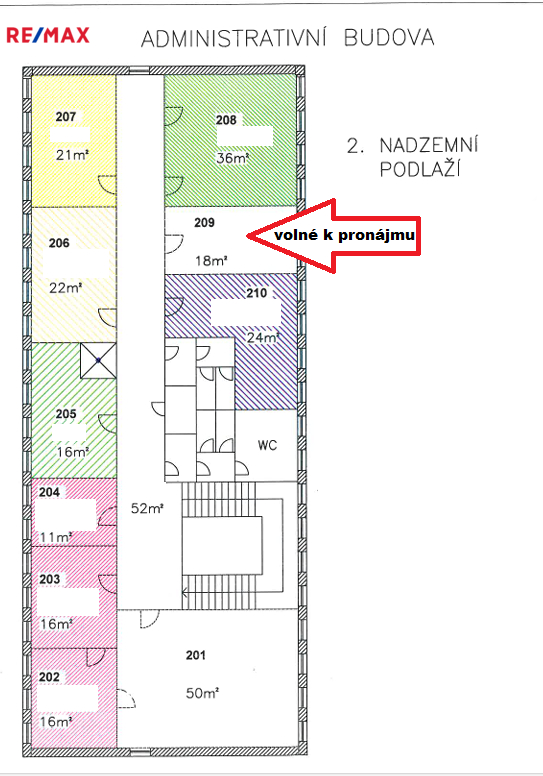 K pronájmu nabízíme kancelář ve 2. NP č. 209 o výměře 18 m2.