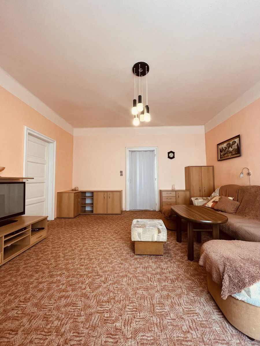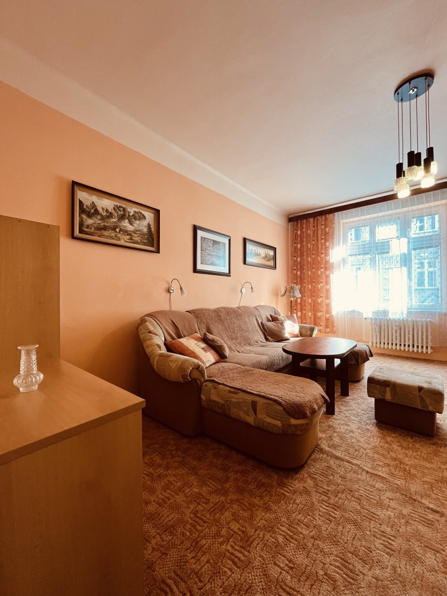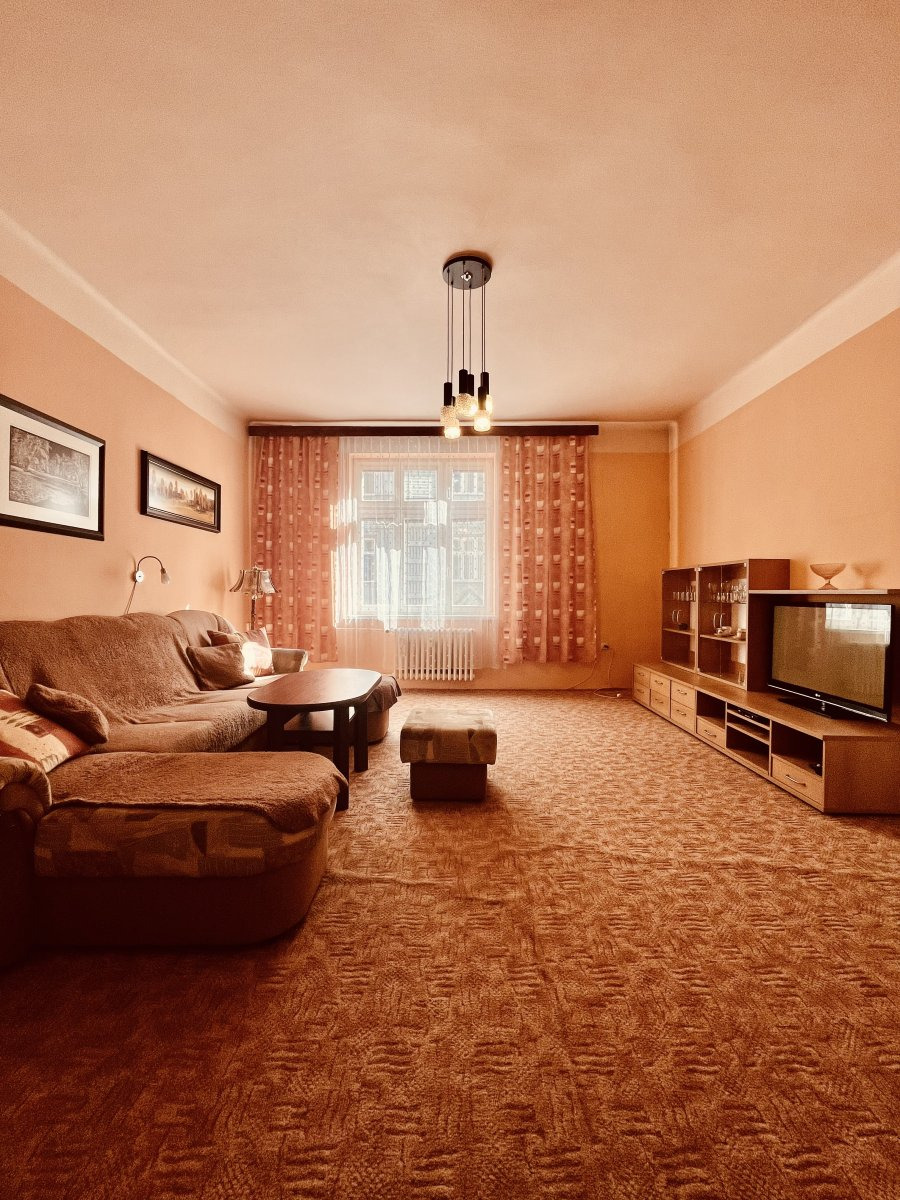 K dlouhodobému pronájmu nabízíme vybavený, velmi prostorný byt o velikosti 4+1 s lodžií o výměře 115 m2, nacházející se ve druhém patře cihlového domu v atraktivní lokalitě centra města.