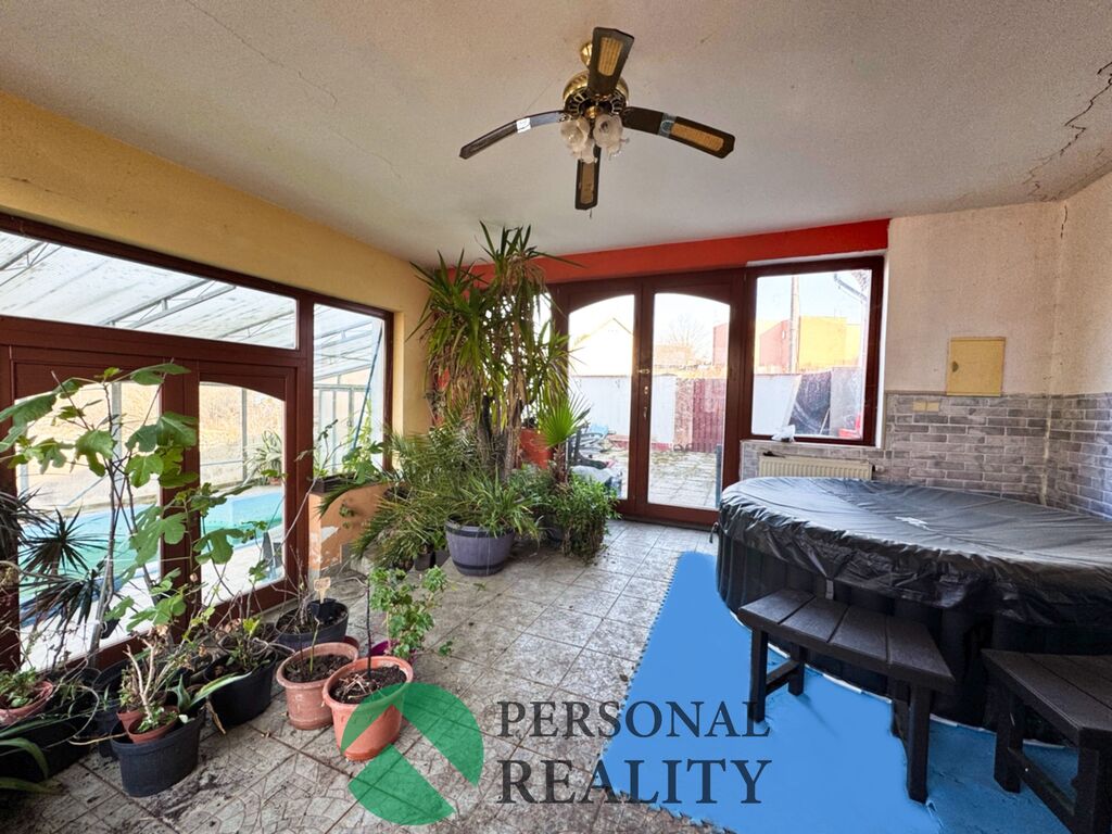 A ta vířivka! Kruhová, 3 metry v průměru, s vyhříváním – ideální pro romantiku i rodinnou poradu. Krytý bazén 6×3 m v zimní zahradě, také s tepelným čerpadlem – plavat můžete klidně i v lednu, pokud se vám nechce do Lázní Teplice.