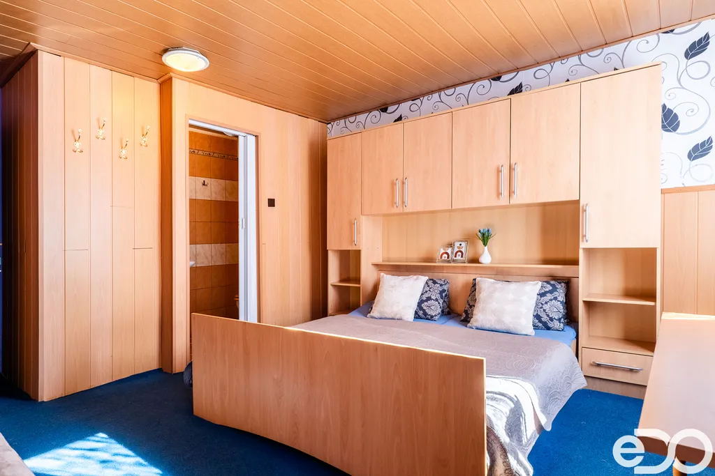 Dvě nadzemní podlaží a podkroví, celková užitná plocha je 290 m². Výměra je pouze orientační. K nemovitosti dále patří sklep a dílna na zahradě. Najdete zde 5 pokojů, společenskou místnost s krbem, kuchyň, technické zázemí a samostatný byt v podkroví. Hlavní zdroj vytápění jsou akumulační kamna, k vytápění slouží také přímotopy a krbová kamna s výměníkem napojená na radiátory a teplou vodu zajišťují bojlery. Napojeno na veřejný vodovod, odpad sveden do septiku – kanalizační přípojka je cca 10 metrů od domu, stačí ji dodělat. Nad podkrovím je navíc půdní prostor (cca 67 m²), využitelný jako sklad nebo úložné zázemí.