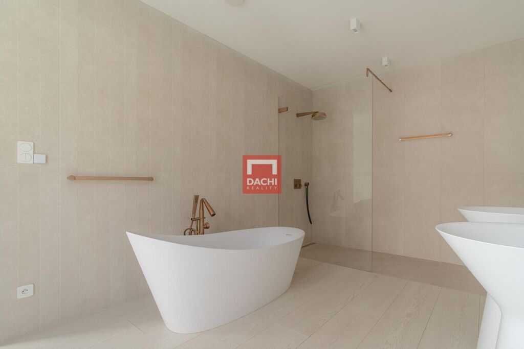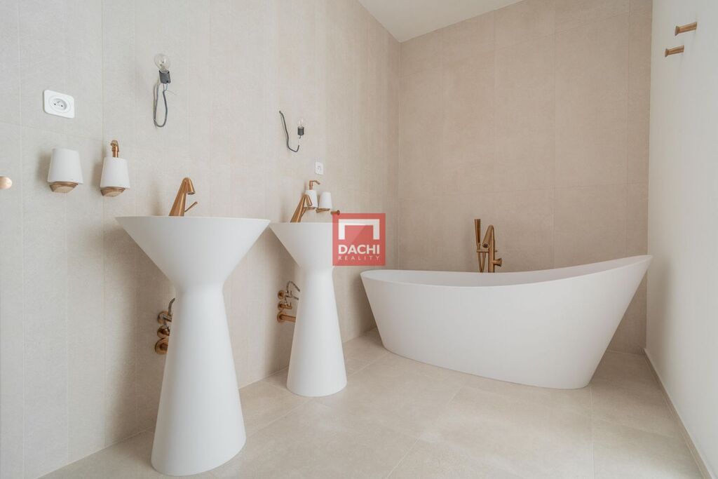 Dispozice zahrnuje tři samostatné ložnice, přičemž komfortní zázemí pro každodenní užívání zajišťují dvě samostatné toalety, každá vybavená bidetem a umyvadlem, a dále dvě plnohodnotné koupelny, které jsou navrženy ve vysokém standardu vždy s dvěma umyvadly, prostornou sprchou i vanou. Hlavní koupelna, která je přístupná přímo z ložnice, navíc vytváří atmosféru soukromého spa, ideální pro chvíle relaxace a klidu.