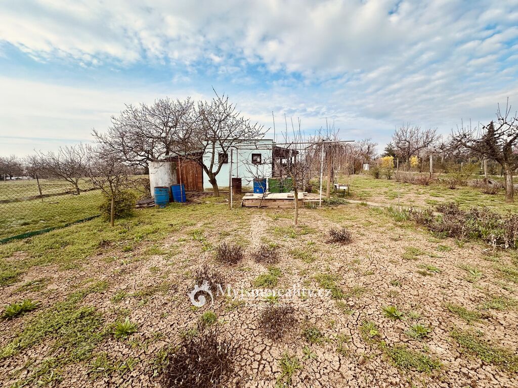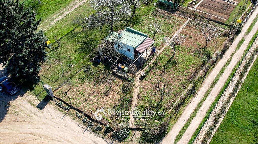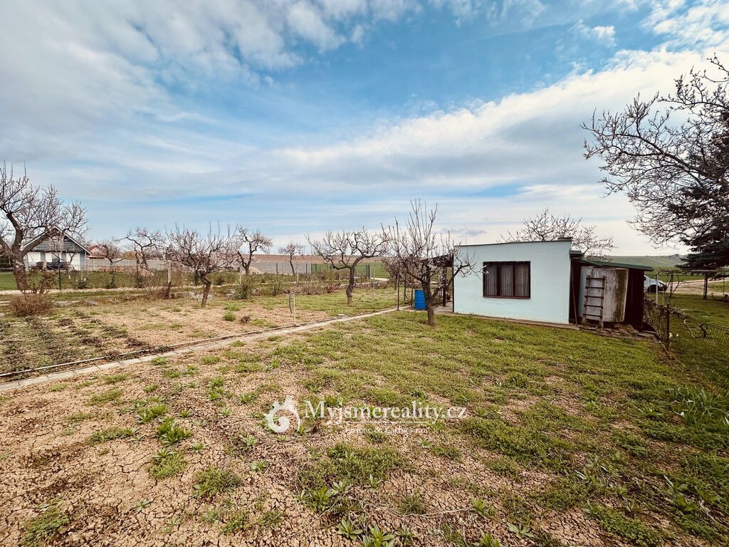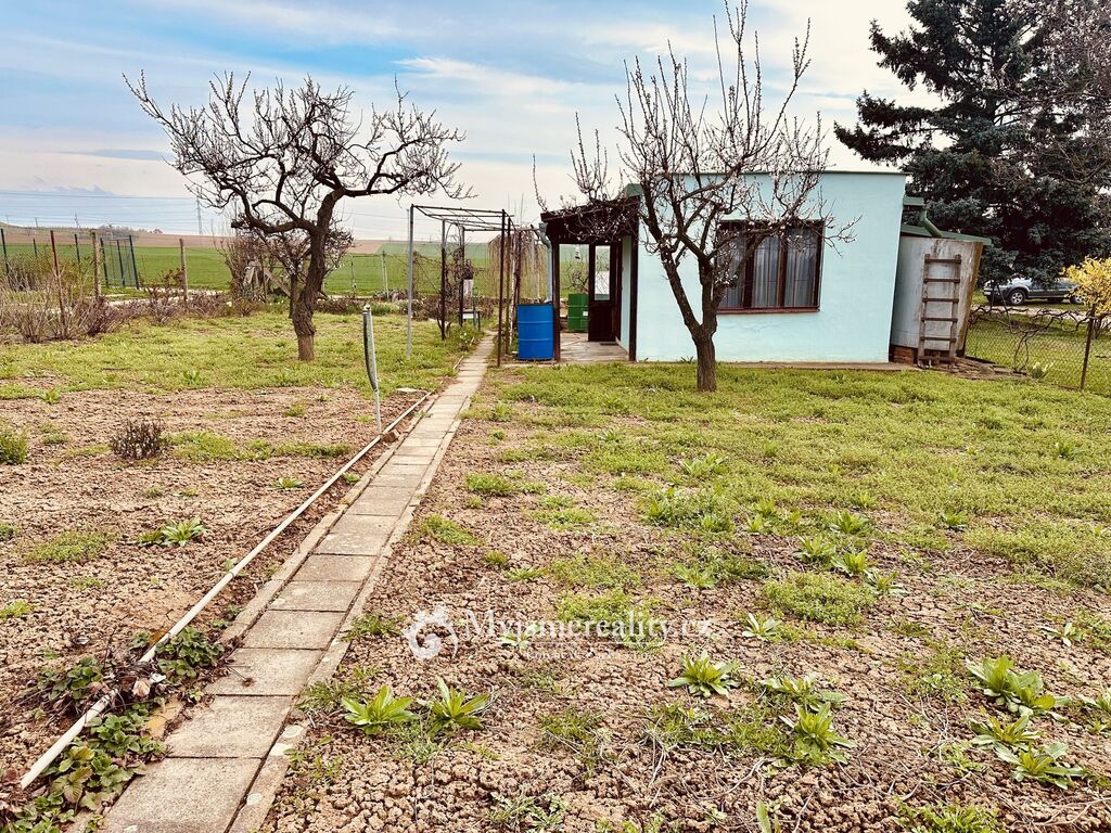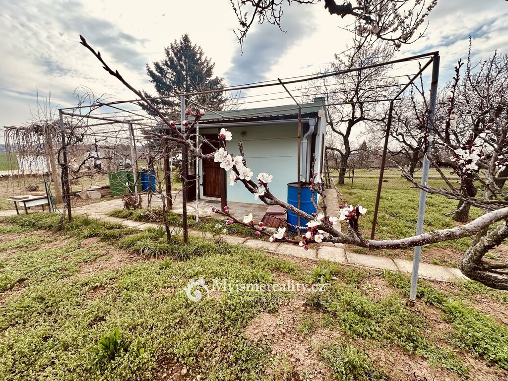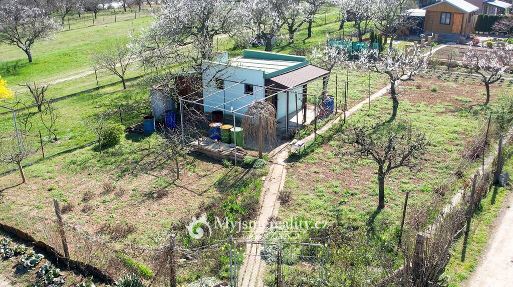 Na zahradě již stojí podsklepený zahradní domek o 16 m², který poskytuje základní zázemí – jehož součástí