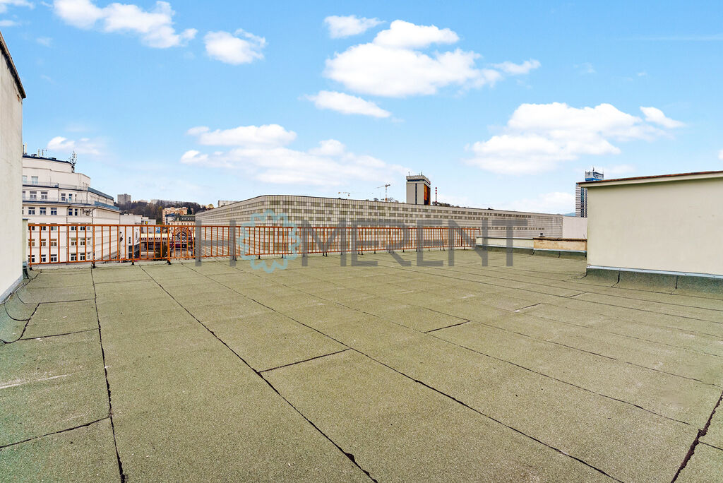 Dalším bonusem je možnost využití střešní plochy o rozloze 40 m², kde lze vybudovat terasu s pochozím chodníčkem. Tento prostor nabízí potenciál pro vytvoření exkluzivního místa k relaxaci nebo atraktivní přidané hodnoty při pronájmu - skvělá volba pro investory, kteří hledají flexibilní a ziskové řešení v atraktivní lokalitě.