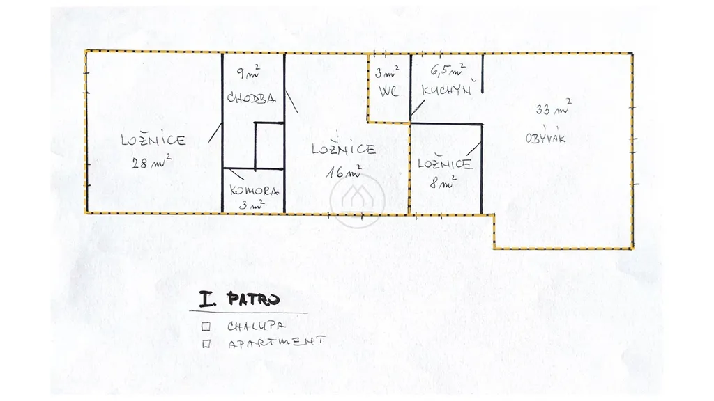 • 2+1 uvítá zádveřím a komorou, v patře se potom nachází prostorný obývací pokoj s otevřeným podhledem na dřevěný krov, dále je k dispozici vlastní kuchyně, koupelna a ložnice s dodatečnou kapacitou lůžek ve vyvýšeném podkroví.