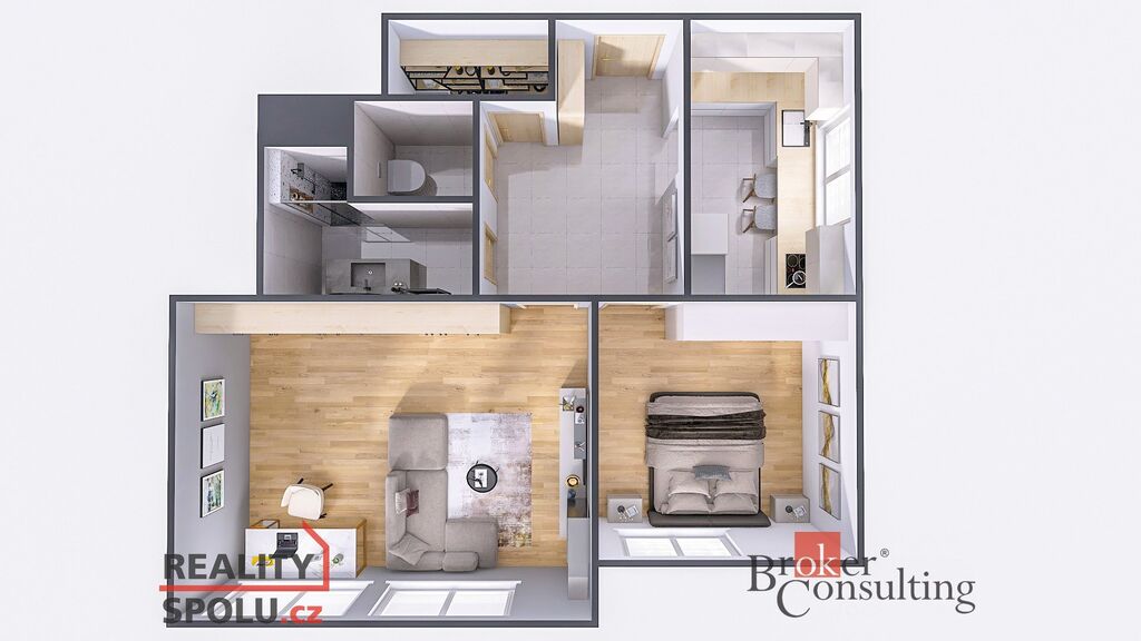 Prostorná dispozice 2+1 ideální pro rodinu či pár