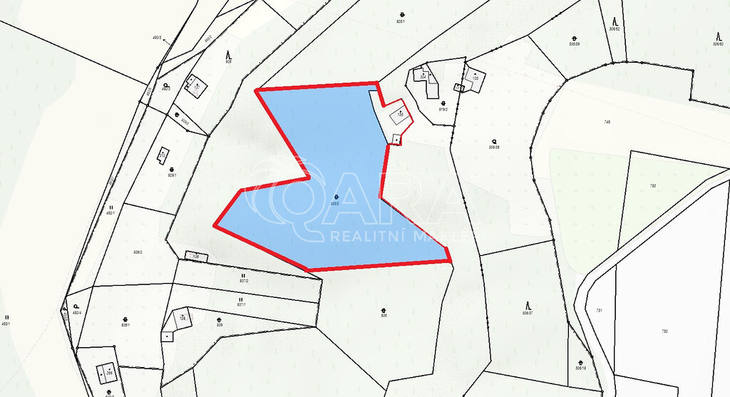Zastavěná plocha a nádvoří o velikosti 347 m2, k tomu okolní zalesněný pozemek o velikosti 5953 m2 (vedeno jako ostatní plocha). Přístup k chatě přes vedlejší svažité pozemky ve vlastnictví Lesy ČR, příjezdovou lesní cestou od obce Kanina.