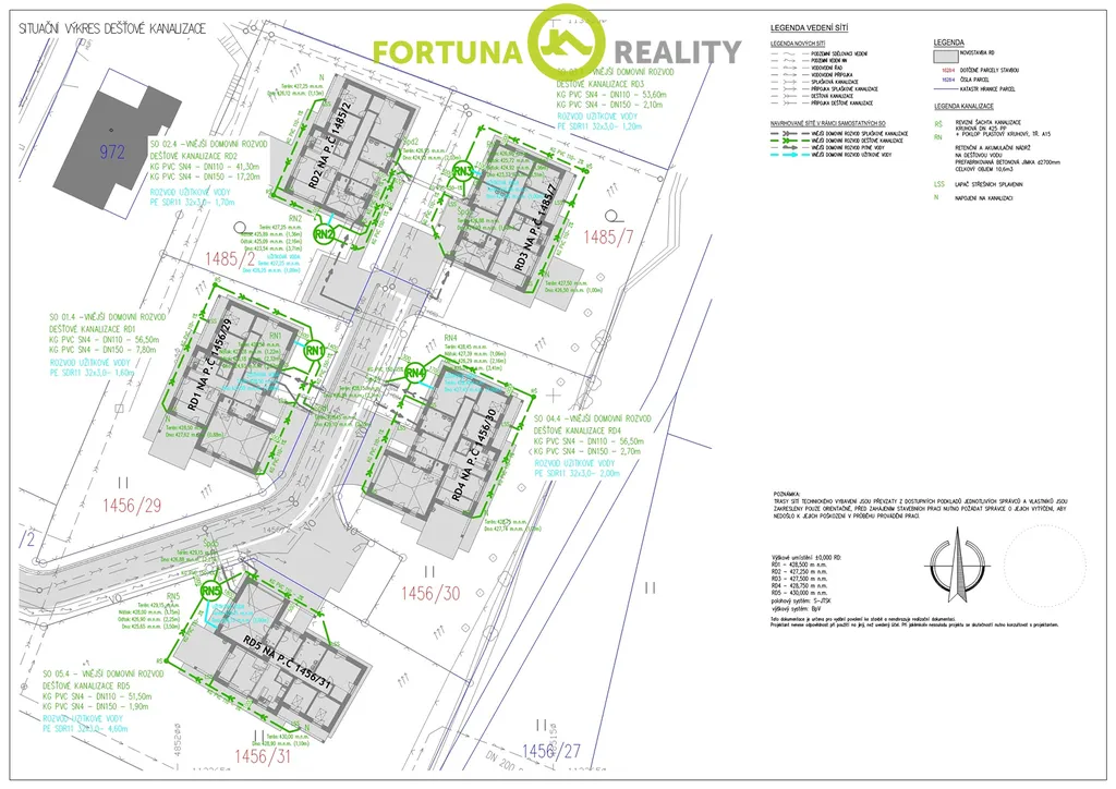 Na pozemku je již vybudována splašková i dešťová kanalizace, elektrická přípojka a vodovodní přípojka. V ceně pozemku je započítáno i povolení připojení k těmto inženýrským sítím.