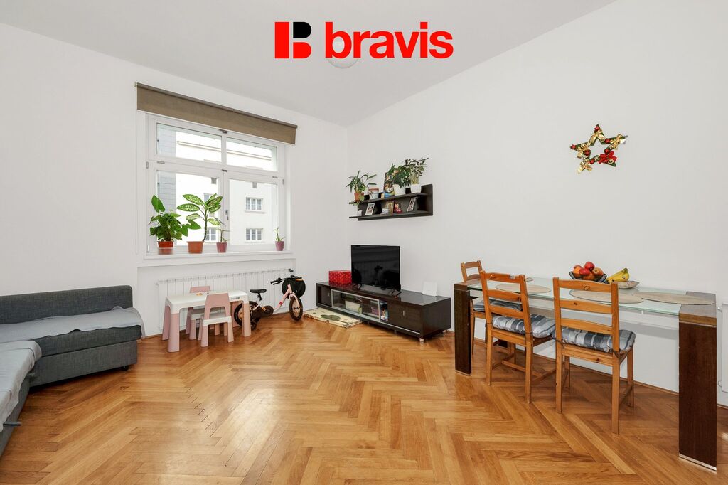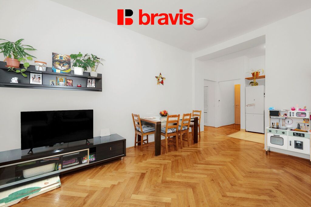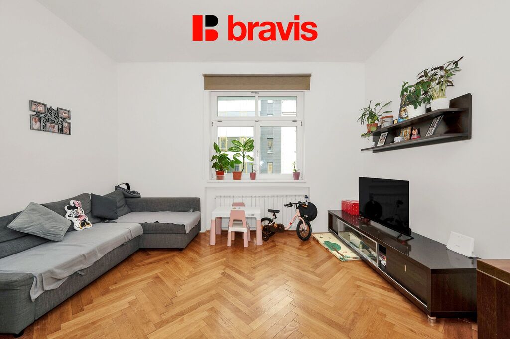 Ve výhradním zastoupení majitele nabízíme k prodeji pěkný byt o dispozici 3+kk, který se nachází v 3. patře cihlového domu s výtahem na vyhledávané ulici Bayerova, blízko samotného centra města Brna.
