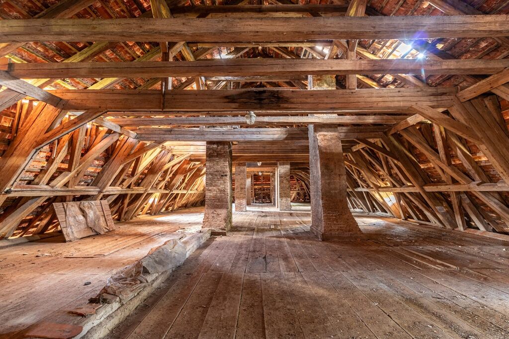 Budova má dvě nadzemní podlaží a prostorné podkroví, které je v současnosti otevřené bez příček, ale nabízí možnost přestavby na plnohodnotný ubytovací prostor.