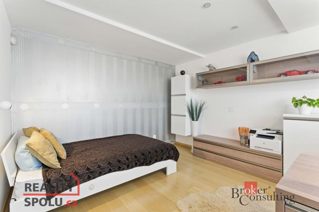 K dispozici jsou dvě ložnice, dětský pokoj, dvě koupelny, další místnost a prostorná předsíň. Dům je vybaven podlahovým vytápěním, které zajišťuje příjemnou teplotu v každém ročním období, a před okenními žaluziemi, které se postarají o soukromí a optimální světelné podmínky. Bezpečnost domu zvyšuje alarmový systém. Díky tomu, že jde o poslední řadový dům, budete mít klid a soukromí, které v řadové zástavbě nebývá běžné.