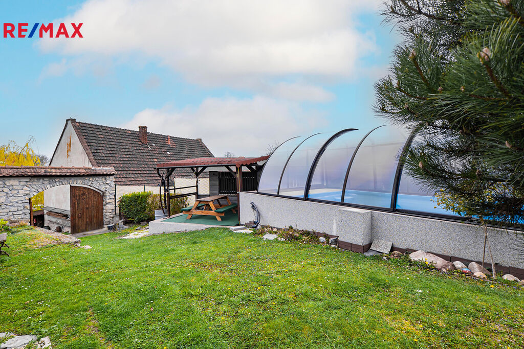 Objekt se skládá ze dvou částí ve tvaru „L“. Původní část domu prošla kompletní rekonstrukcí v roce 2003, druhá část byla postavena z Porothermu před cca 13 lety. Obě části mají dvě nadzemní podlaží a prostornou půdu, přičemž v nové části je možné půdu upravit na další obytné prostory.