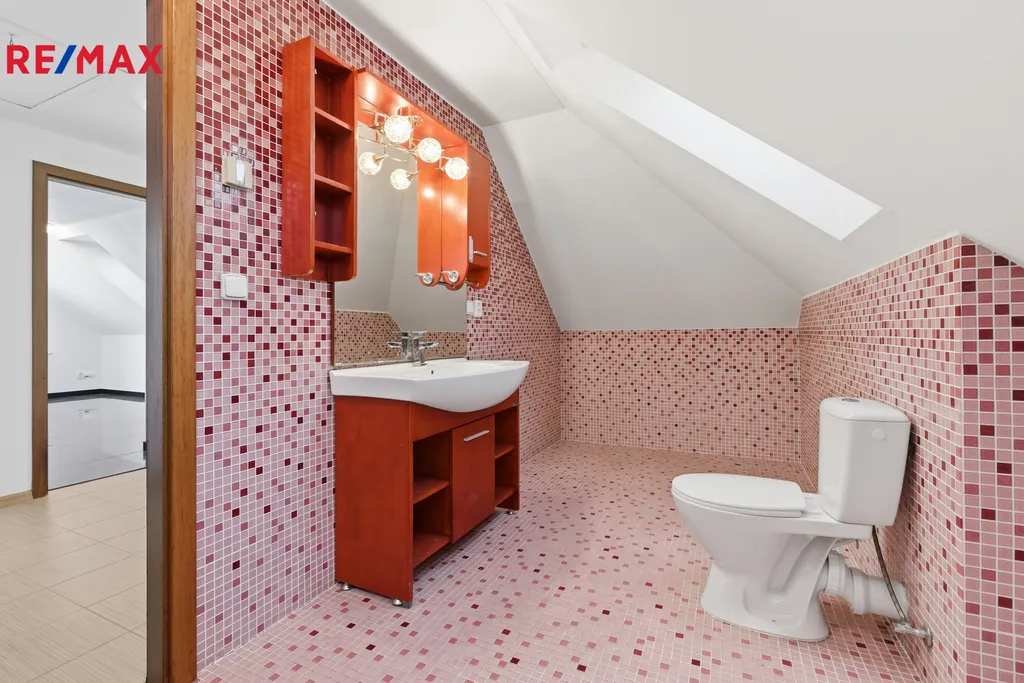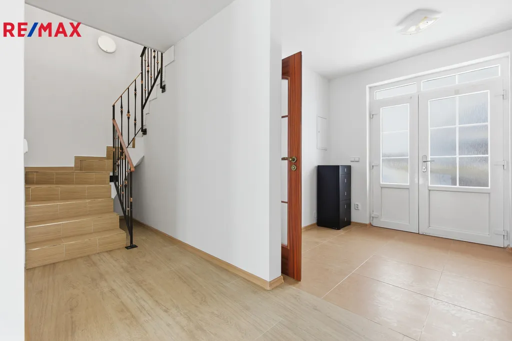 Součástí domu je také garáž s přímým vstupem do obytné části, která kromě parkování nabízí i praktický úložný prostor.