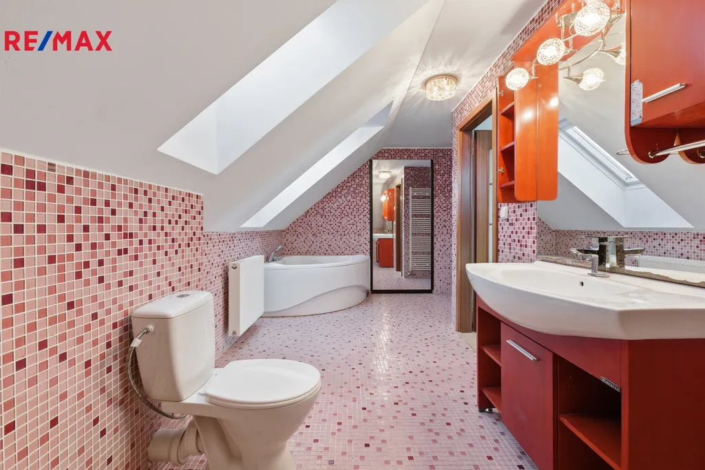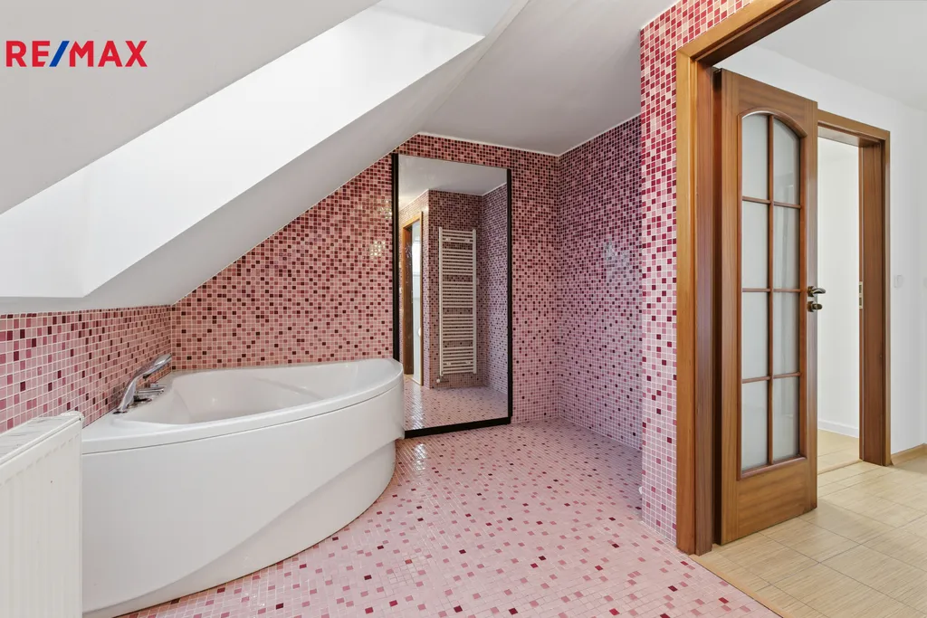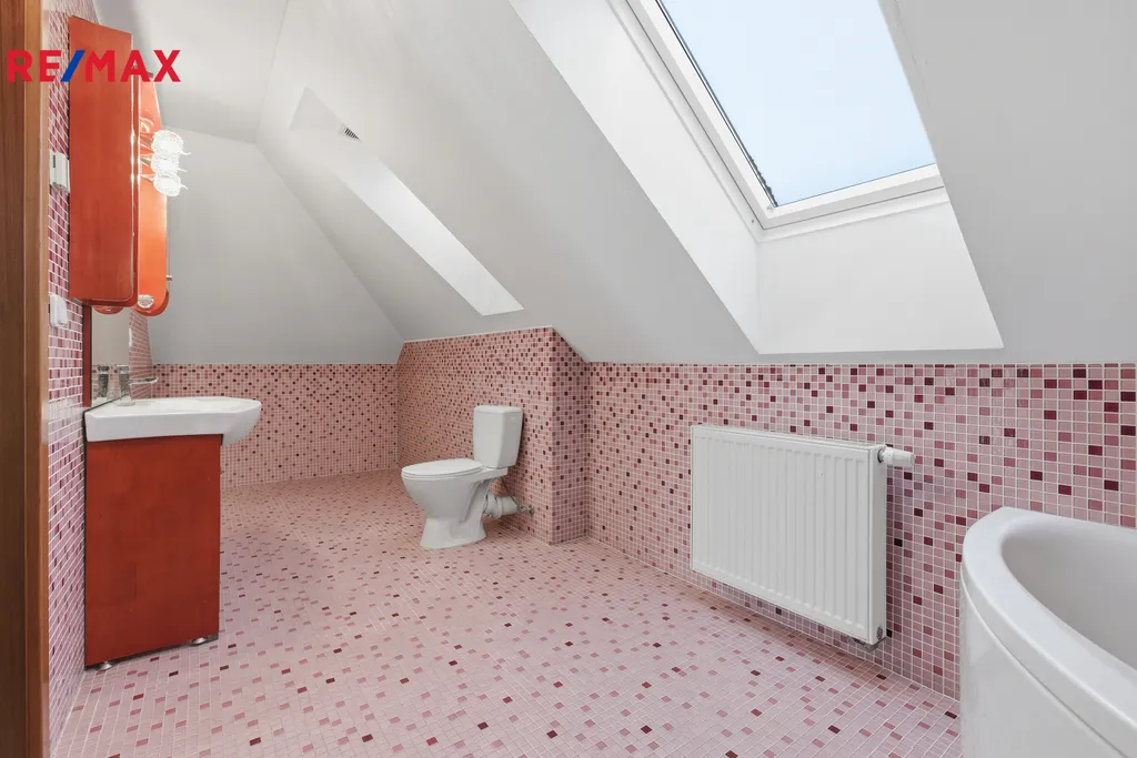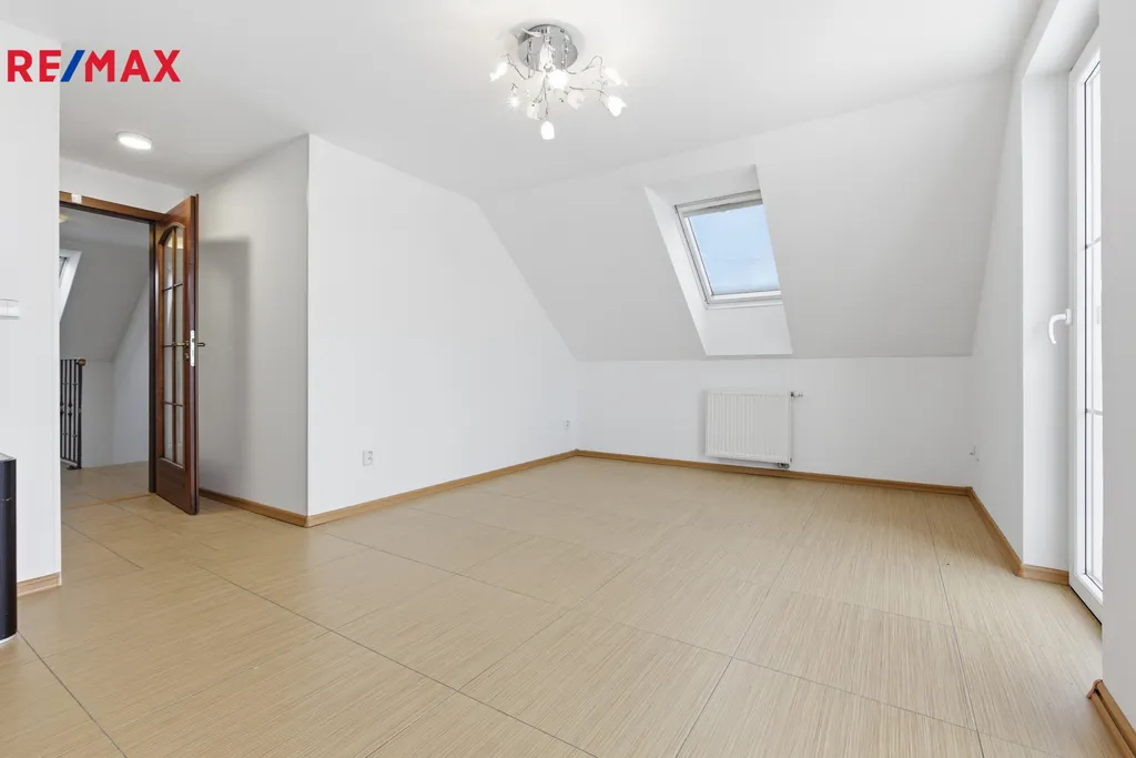 Patro: tři světlé ložnice a koupelna s vanou.