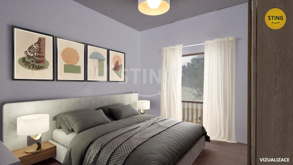 Po schodišti se dostanete do prvního patra, kde jsou umístěny tři prostorné ložnice. Každá ložnice je navržena s ohledem na maximální pohodlí a soukromí. V patře se nachází také druhá koupelna a samostatné WC, což zajišťuje komfortní bydlení i pro větší rodinu.