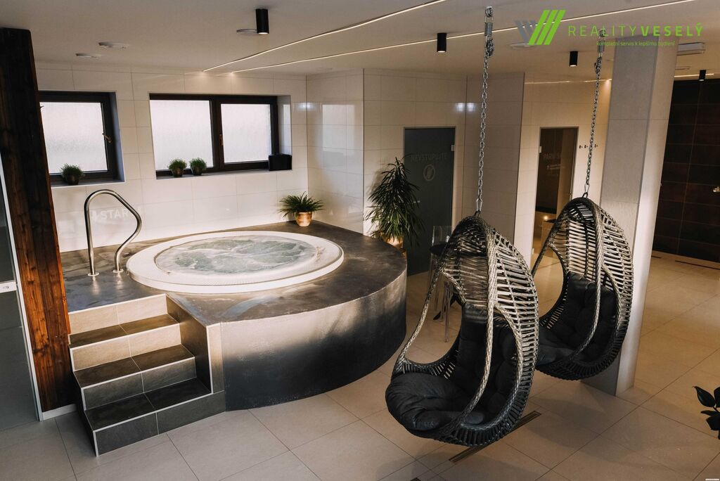 V současnosti je objekt využíván jako zavedené Wellness – finská a parní sauna, dvě vířivé vany, ochlazovací bazén, odpočívárna, recepce, bar, šatny, venkovní ochlazovací terasa, sklepní prostory využívány jako masérna. Část objektu je využívána jako zařízený apartmán s kapacitou 4 lůžek ke krátkodobému pronájmu. Objekt byl nákladně kompletně rekonstruován a uveden do provozu v roce 2020, vytápění ústřední, tepelným čerpadlem. Možno pokračovat ve stávající činnosti, popřípadě předělat pouze na ubytování nebo jakoukoliv činnost dle vlastních představ. Součástí nemovitosti je stavební pozemek před budovou umožňující vlastní parkování nebo stavbu dalšího objektu. Pro více informací a prohlídku volejte makléři.